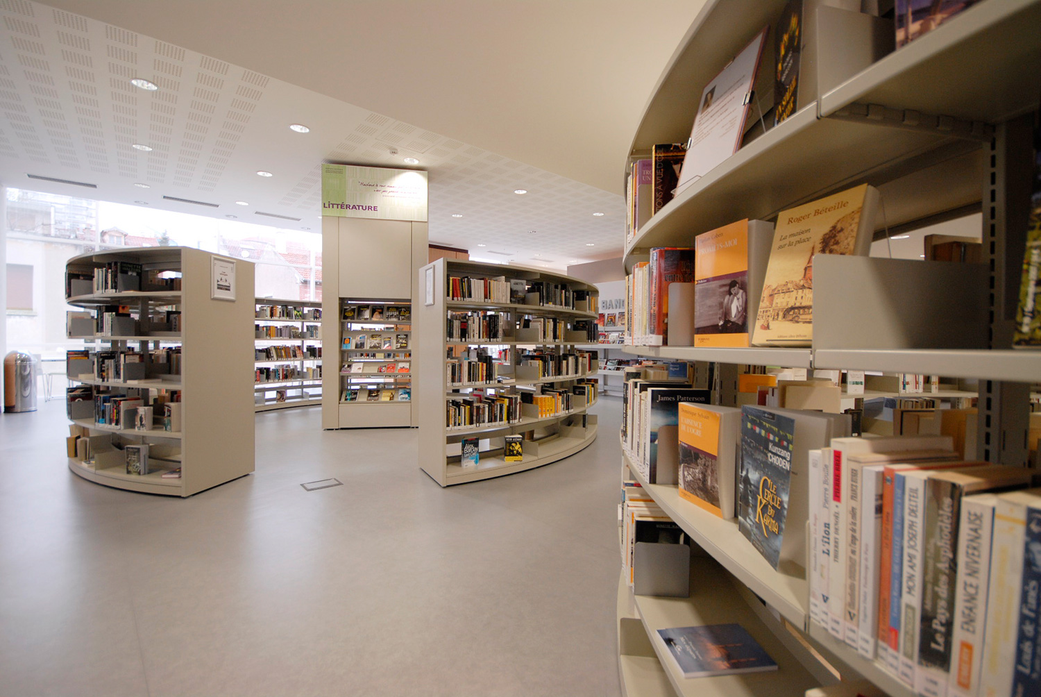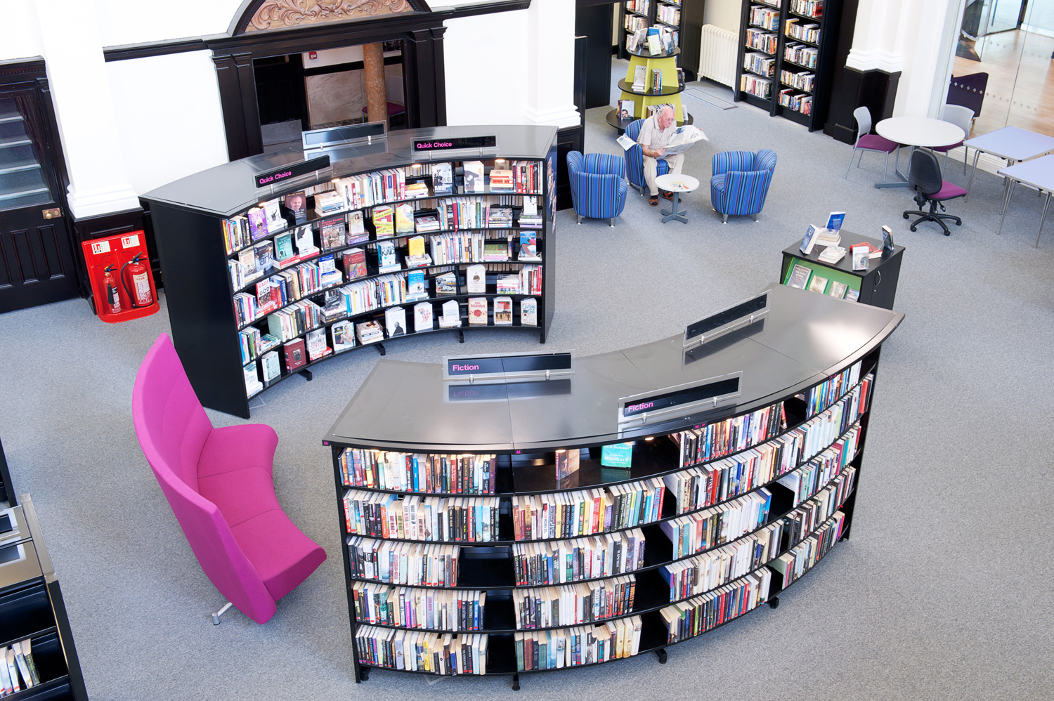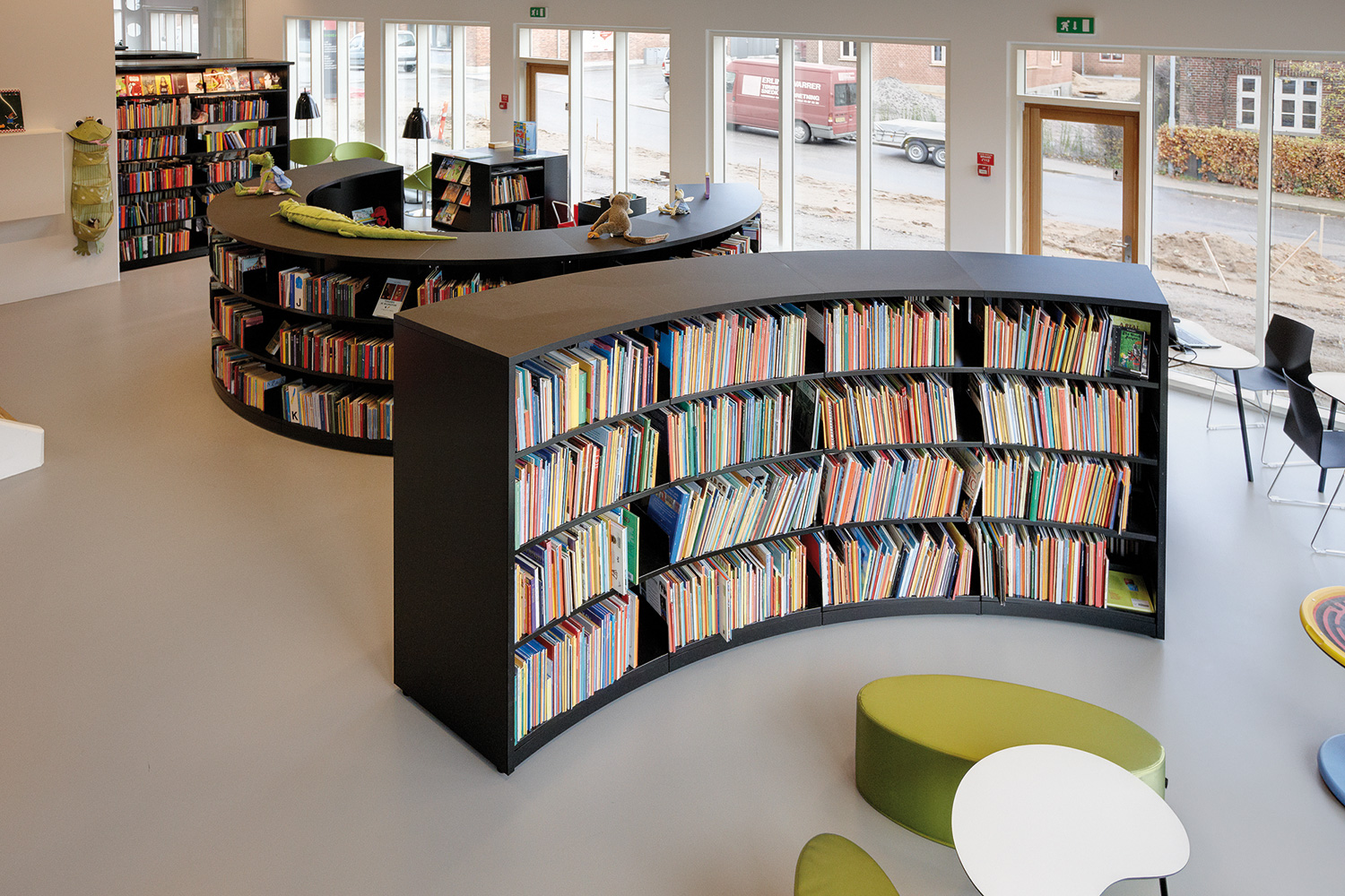Vi kan tilbyde specielle løsninger, der passer ind i dit bibliotek, f.eks. en enkelt-sidet rund reol kombineret med siddeplads. Se fotos for inspiration og de tekniske specifikationer under Downloads for flere detaljer.