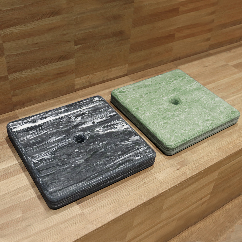 Puderne fås i flere marmorerede farver, som er inspireret af naturen, og er ideelle til brug på gulv, bænke, trapper osv.