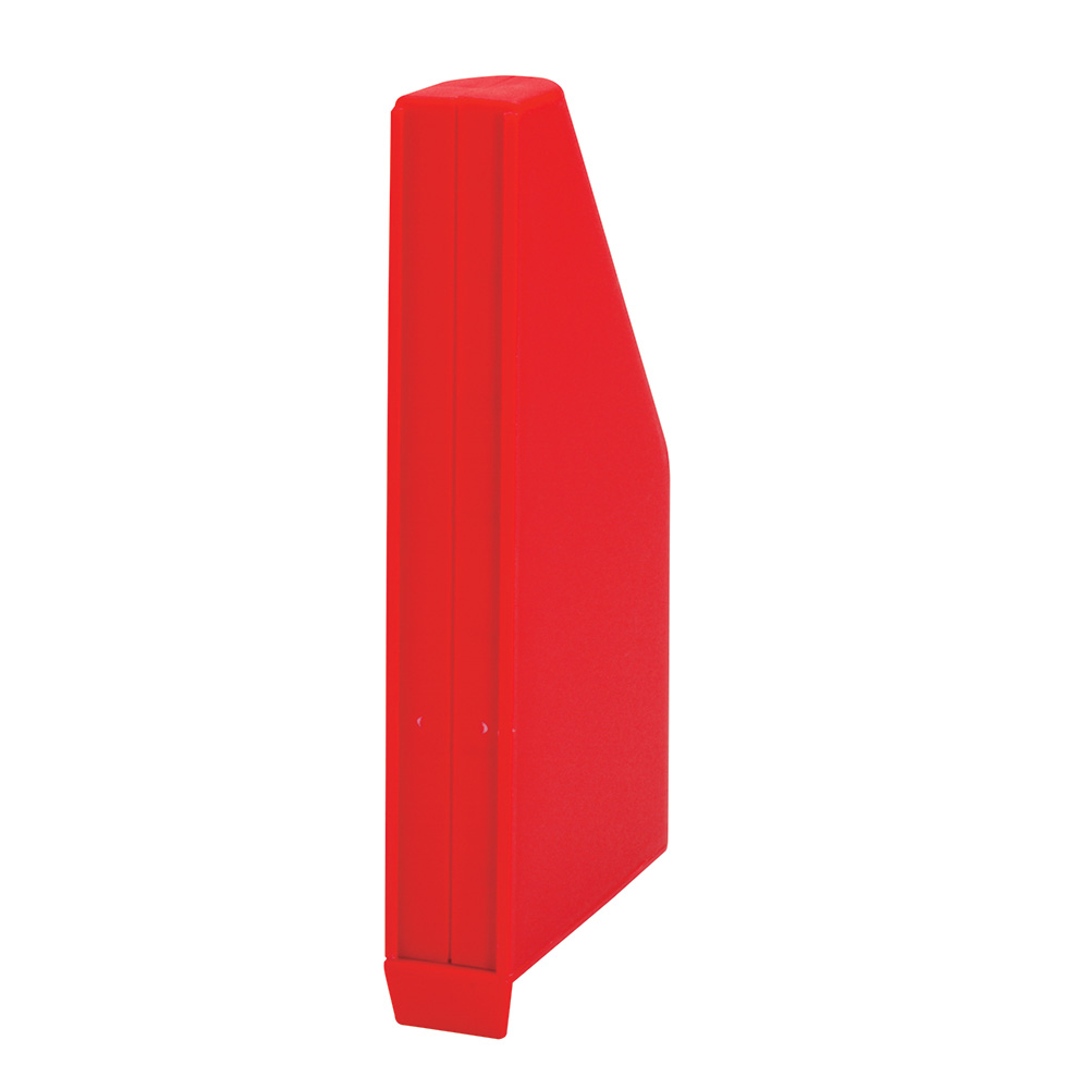 Skillestøtten består af tre dele: to sider og en bundplade med stop for at forhindre, at den rykker ind på hylden.