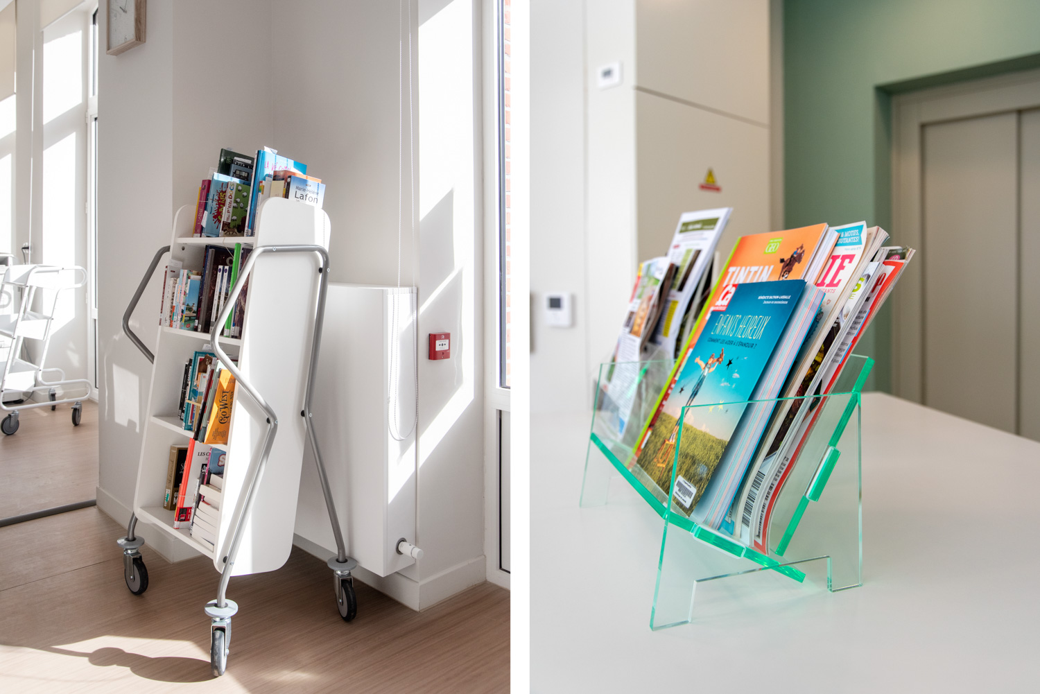 Bogvognens hældning sikrer stabil opbevaring og giver et godt overblik over de bøger, du skal håndtere.