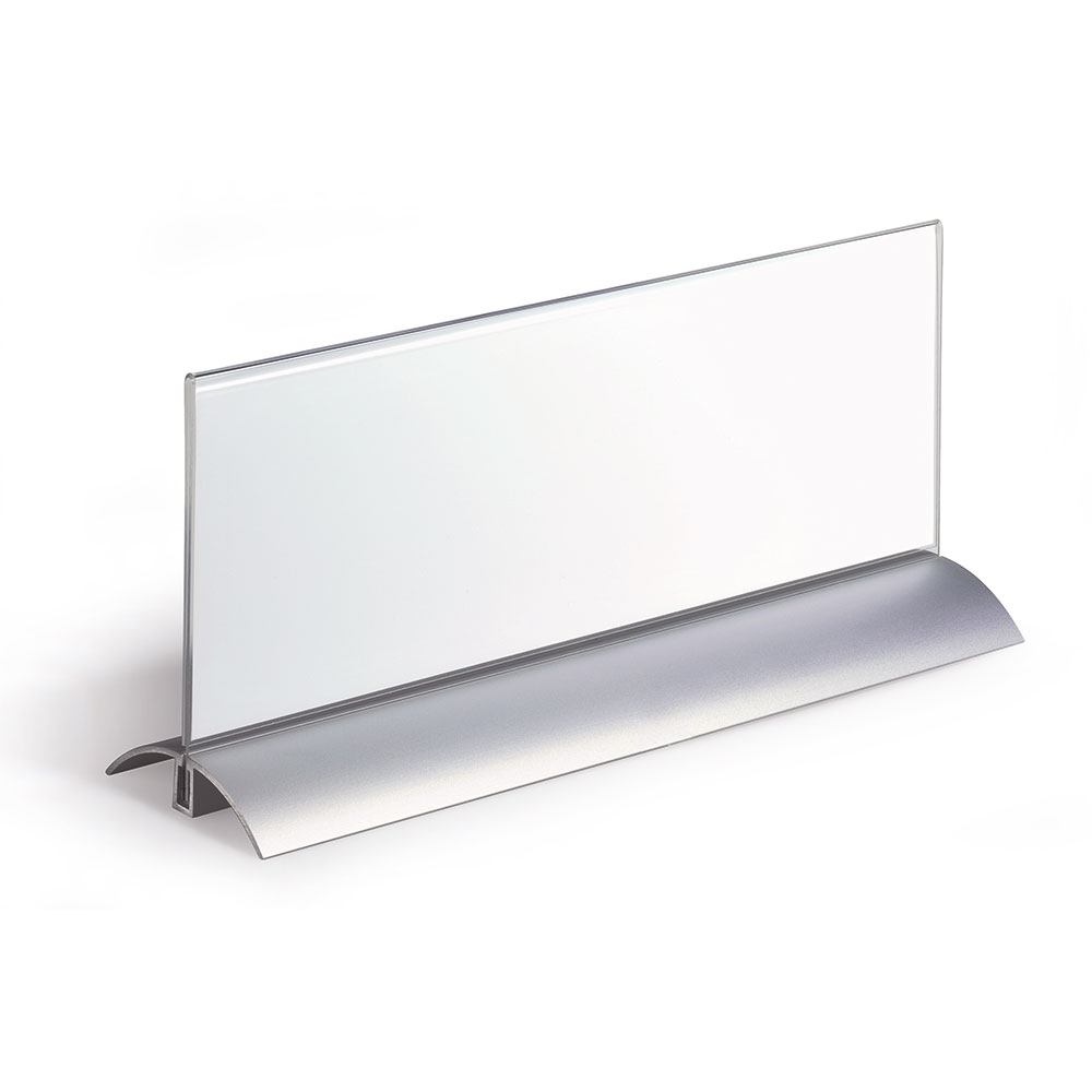 Eksklusiv dobbeltsidet skilteholder til bord, skranke, hylde, vinduer m.m.