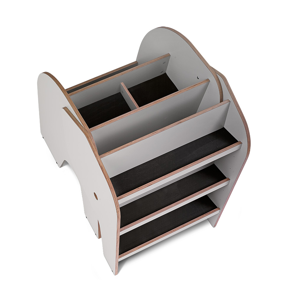 Vi har anstrengt os til det yderste for at udvikle en kollektion af børnemøbler specielt udformet til biblioteker og andre læringsmiljøer. Børnemøbler hvor legende form, finurlige funktioner, solid konstruktion og gode materialevalg forenes med omsorg for såvel brugerne som miljøet.