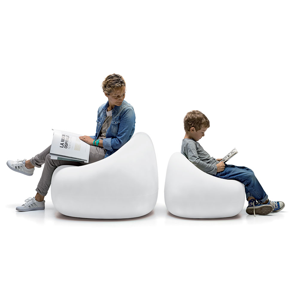 Gumball er en robust stol formet som en 'nedsunken sækkestol' og tilbyder den perfekte plads til samvær med venner eller med en god bog.