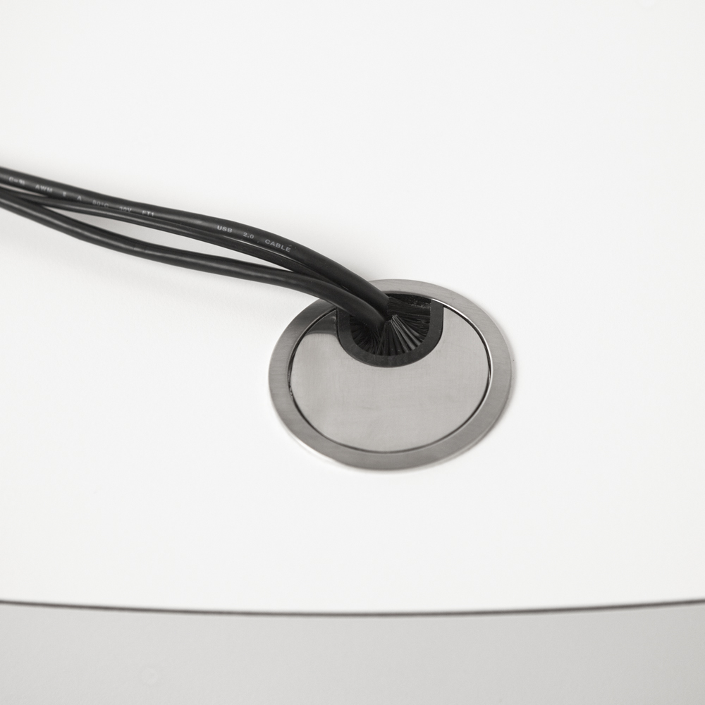 Skranken har kabelgennemføring i bordpladen og kan forsynes med holder til CPU eller laptop. Kan desuden udstyres med RFID-læser under bordet.