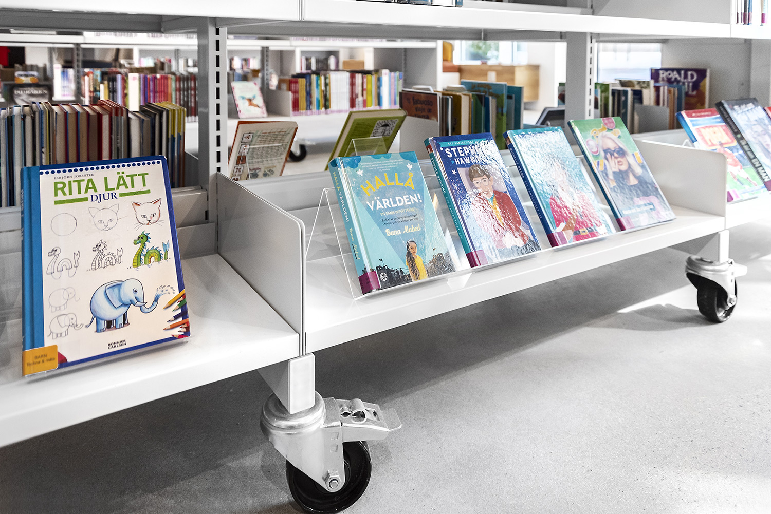 Akryldisplays for alle størrelser bøger, AV-medier, information og børnelitteratur.