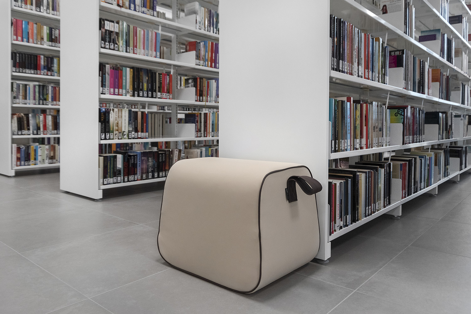 Puffen kan anvendes som ekstra siddeplads som supplement til øvrige biblioteksmøbler eller som enkeltstående designobjekt.