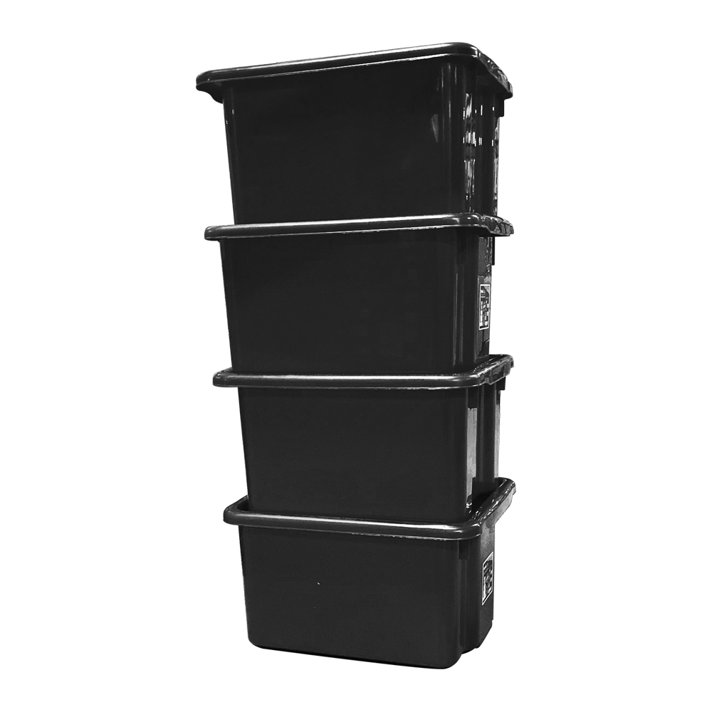 Boksene er stabelbare og afhængig af, hvordan de vender, kan de stables indeni eller ovenpå hinanden.