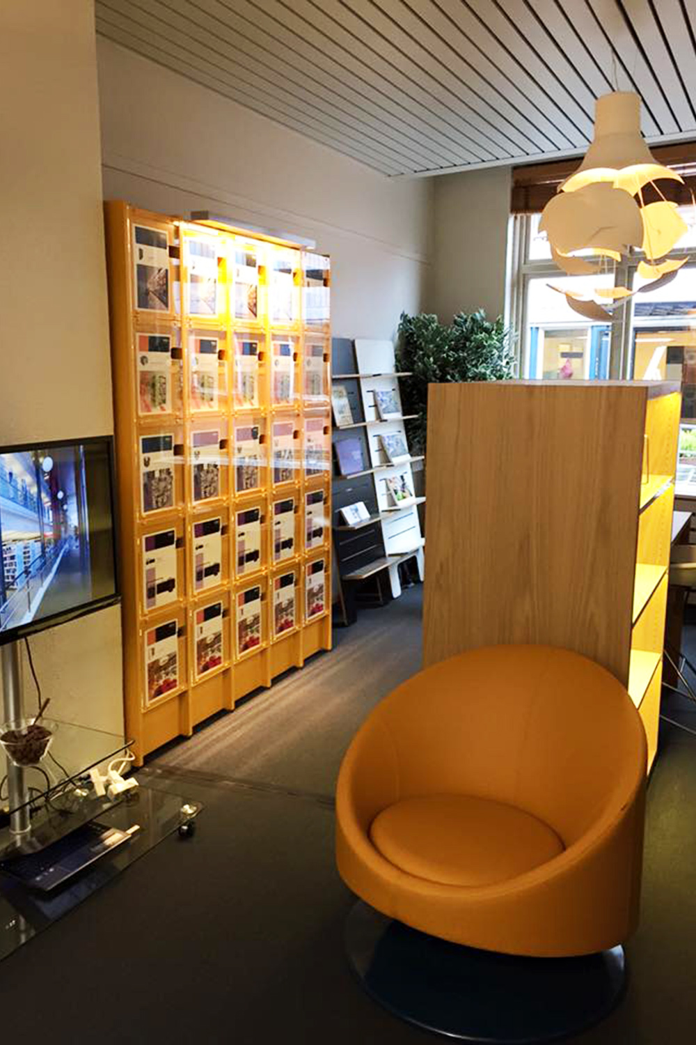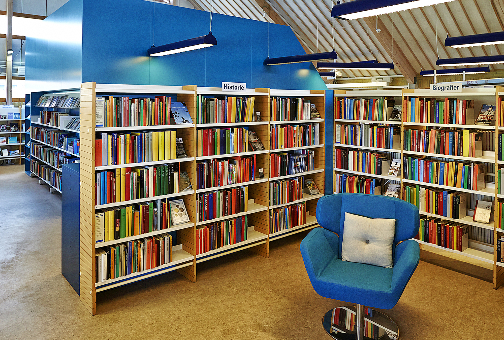 Vores indretningsarkitekt Lykke Jørgin overtog et idéoplæg udarbejdet af Signal Arkitekter. De fleste reoler er genbrug, og som en del af den nye indretning har Lykke tegnet specialmøbler, som deler r