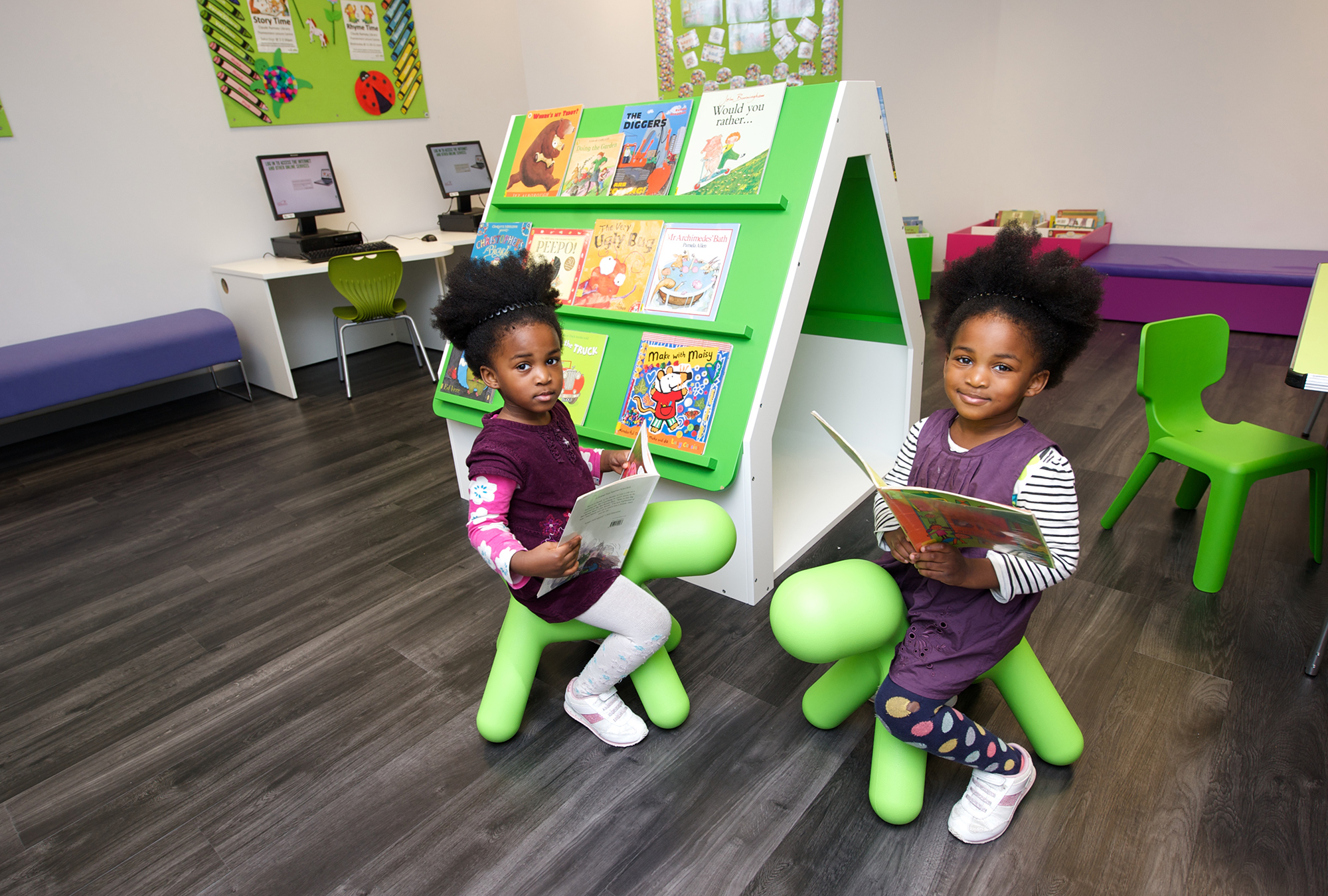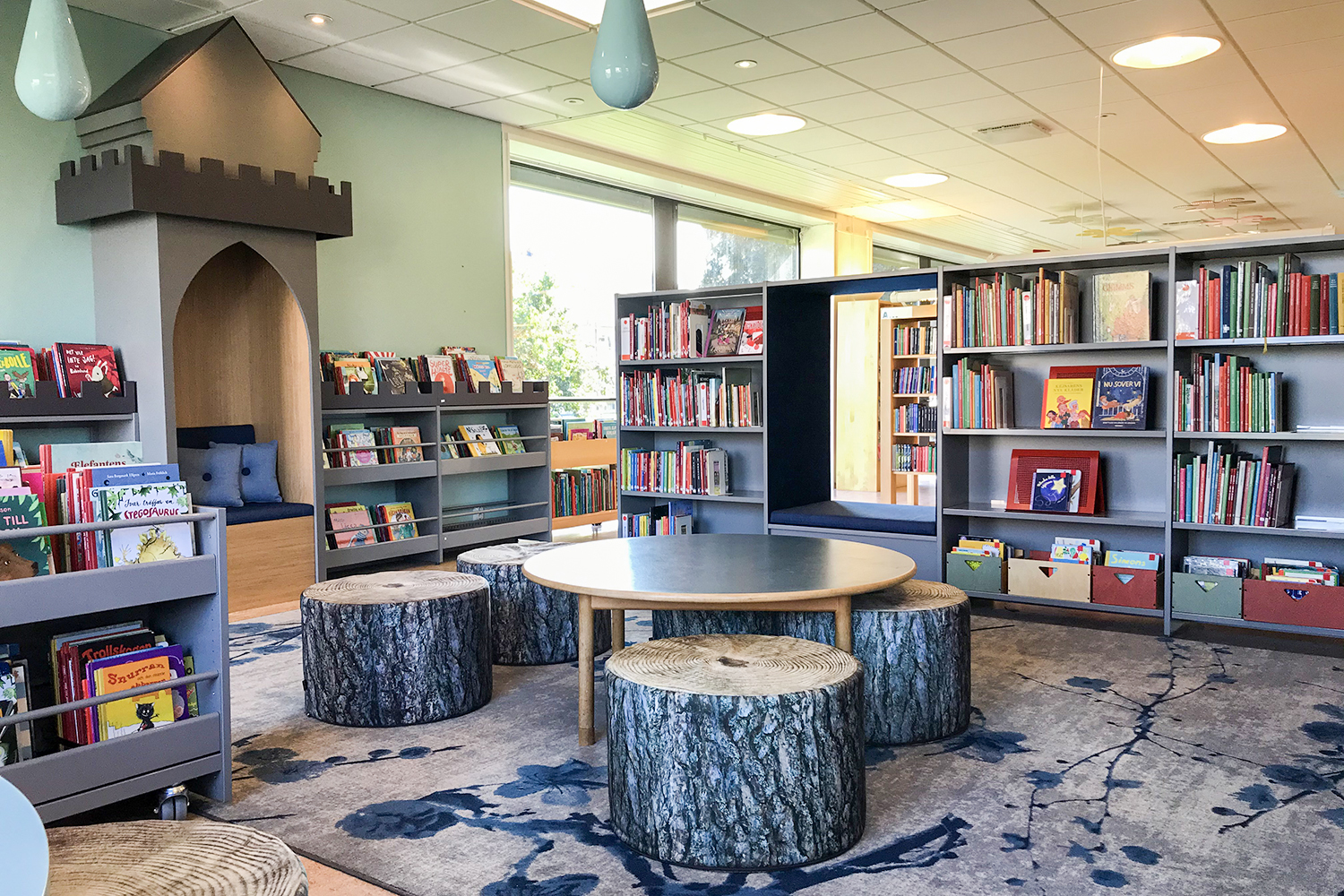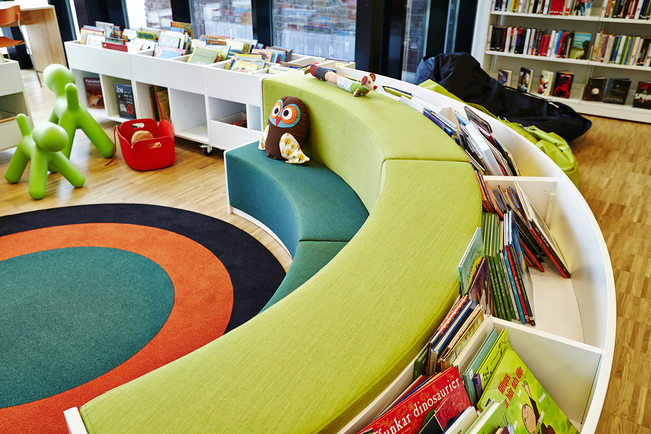 Børneafdelingen er delt ind i to sektioner: et for de yngre børn og et for teenagere. De forskellige områder er blevet skabt ved hjælp af farver, tæpper og farverige vægge mellem reolerne.
