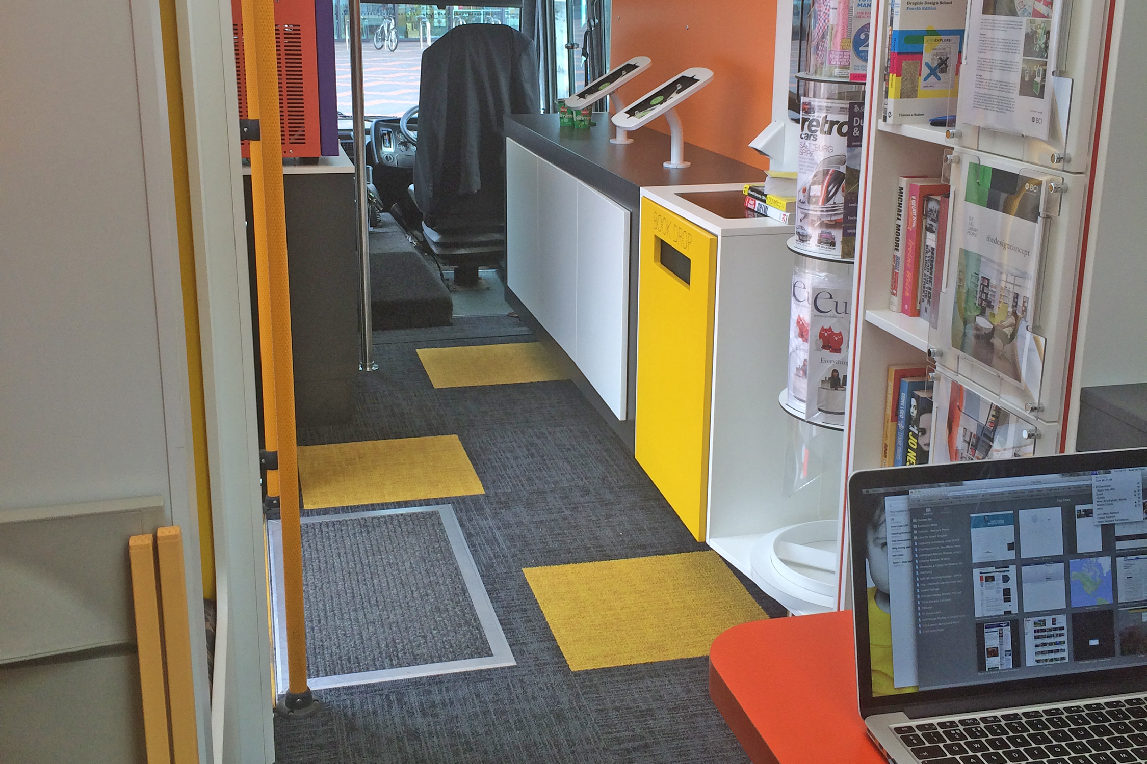 Stig ombord og oplev bibliotekernes fremtid! Biblioteksbussen er fyldt med en blanding af produkter Eurobib Direct; Turbino og Cubes sat sammen med Cocoon og 60/30 klassisk stålreol. Ideen er at bring