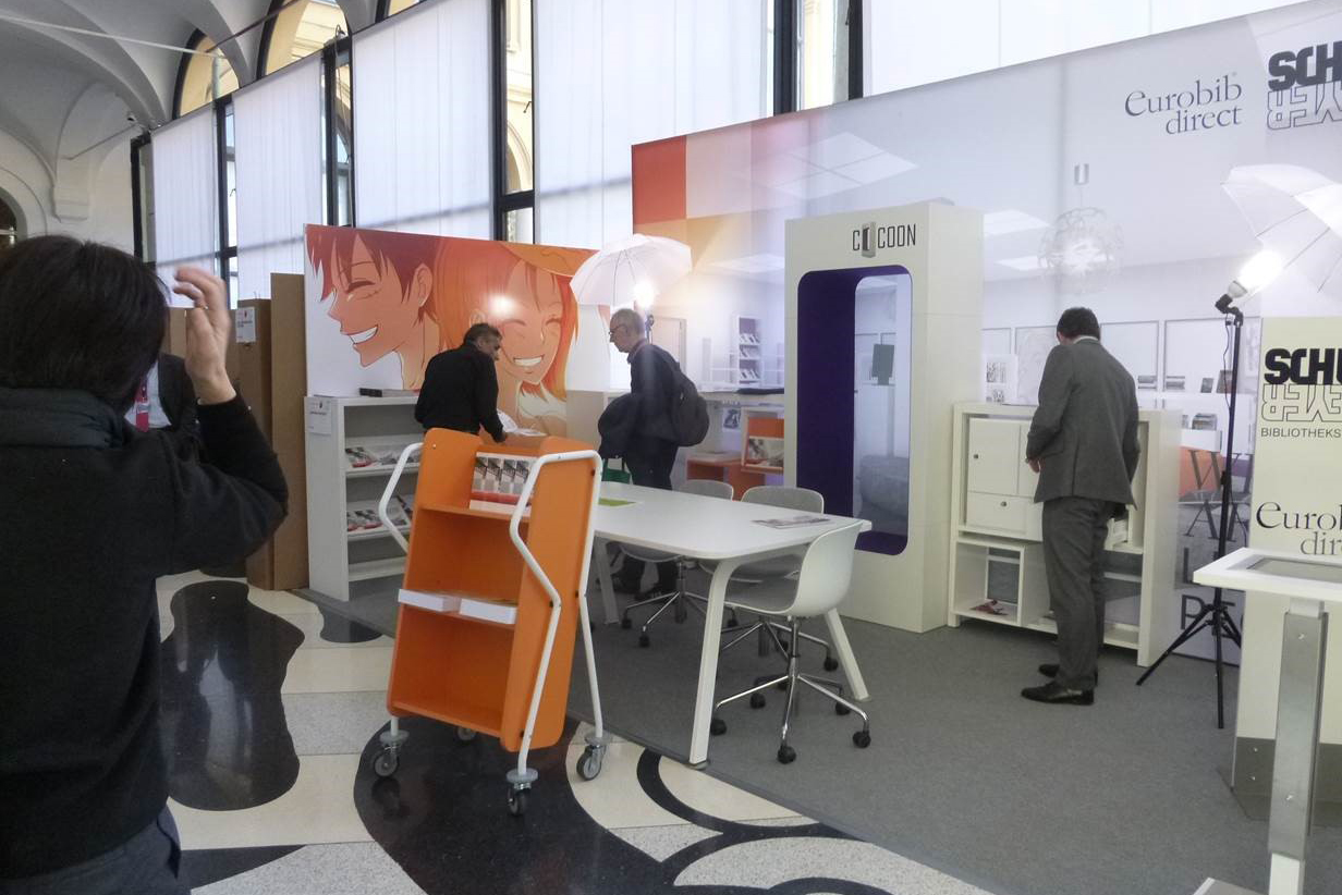 Vores søsterselskab Schulz Speyer Bibliothekstechnik AG og vores italienske forhandler Harmonie Project præsenterede et udvalg af vores produkter og vores kompetencer indenfor biblioteksdesign.