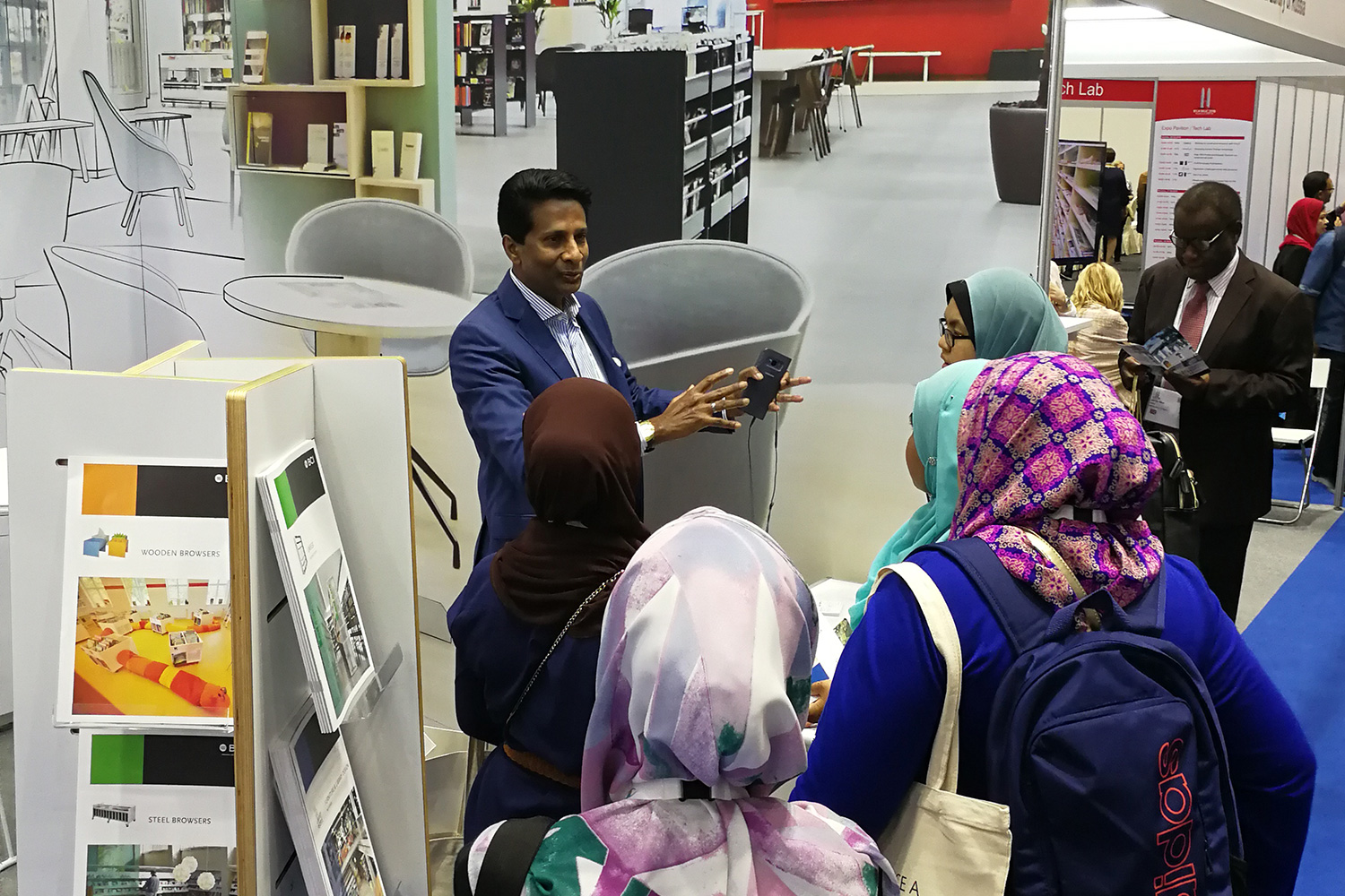 På messen, som har fokus på uddannelse, præsenterede vi produkter fra Schulz Speyer og Eurobib Direct. Vi ønskede at vise vores kunder hvordan man skaber et tidssvarende og innovativt bibliotek.