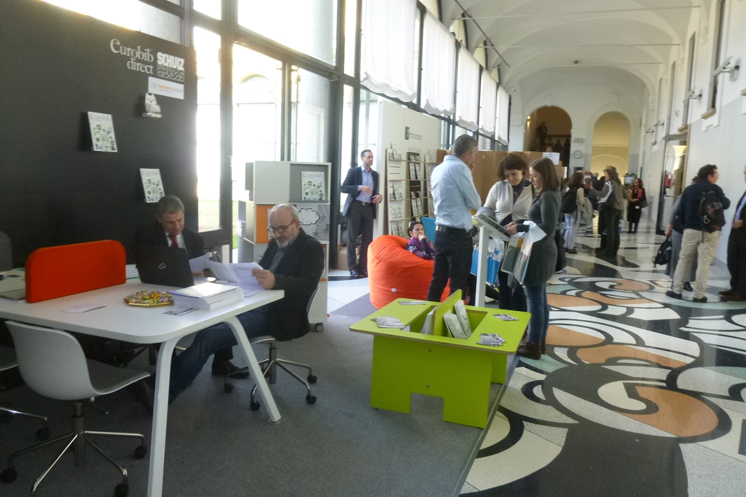 Vores søsterselskab Schulz Speyer Bibliothekstechnik AG og vores italienske forhandler Harmonie Project præsenterede et udvalg af vores produkter og vores kompetencer indenfor biblioteksdesign.