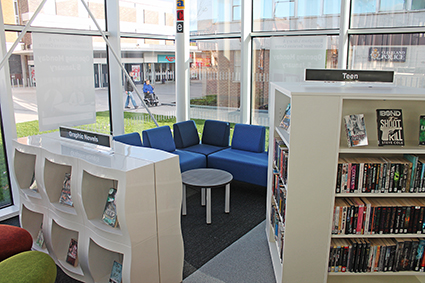 Det supermoderne bibliotek til £2,7 mio er bygget, hvor byen tidligere havde kunstgalleri og kommunekontor