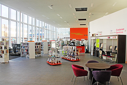 Udfordringen for vores søsterselskab thedesignconcept var at skabe et lyst og åbent plan, der er indbydende, supermoderne og som imødekommer både bibliotekets og borgerservice's ønsker. thedesignconcet ville sikre, at de også opfordrer brugerne i borgerservice til at bruge biblioteket, selvom de måske ikke er traditionelle biblioteksbrugere.