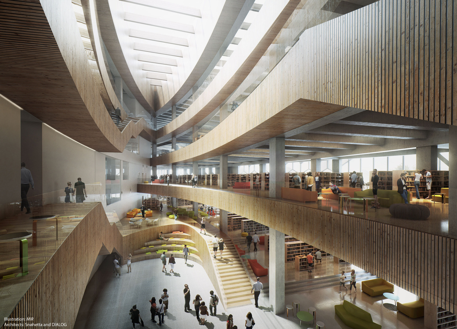 Med et areal på 22.000 m2 fordelt på 5 etager, kommer biblioteket til at indeholde 7.000 hyldemeter med opbevaring og udstilling af bøger og andre media. Slimline reolsystem bliver tilpasset for at imødekomme ønsker fra både arkitekter og biblioteket. LED-lys bliver installeret på hver hylde med næsten usynligt armatur og ledningsføring.