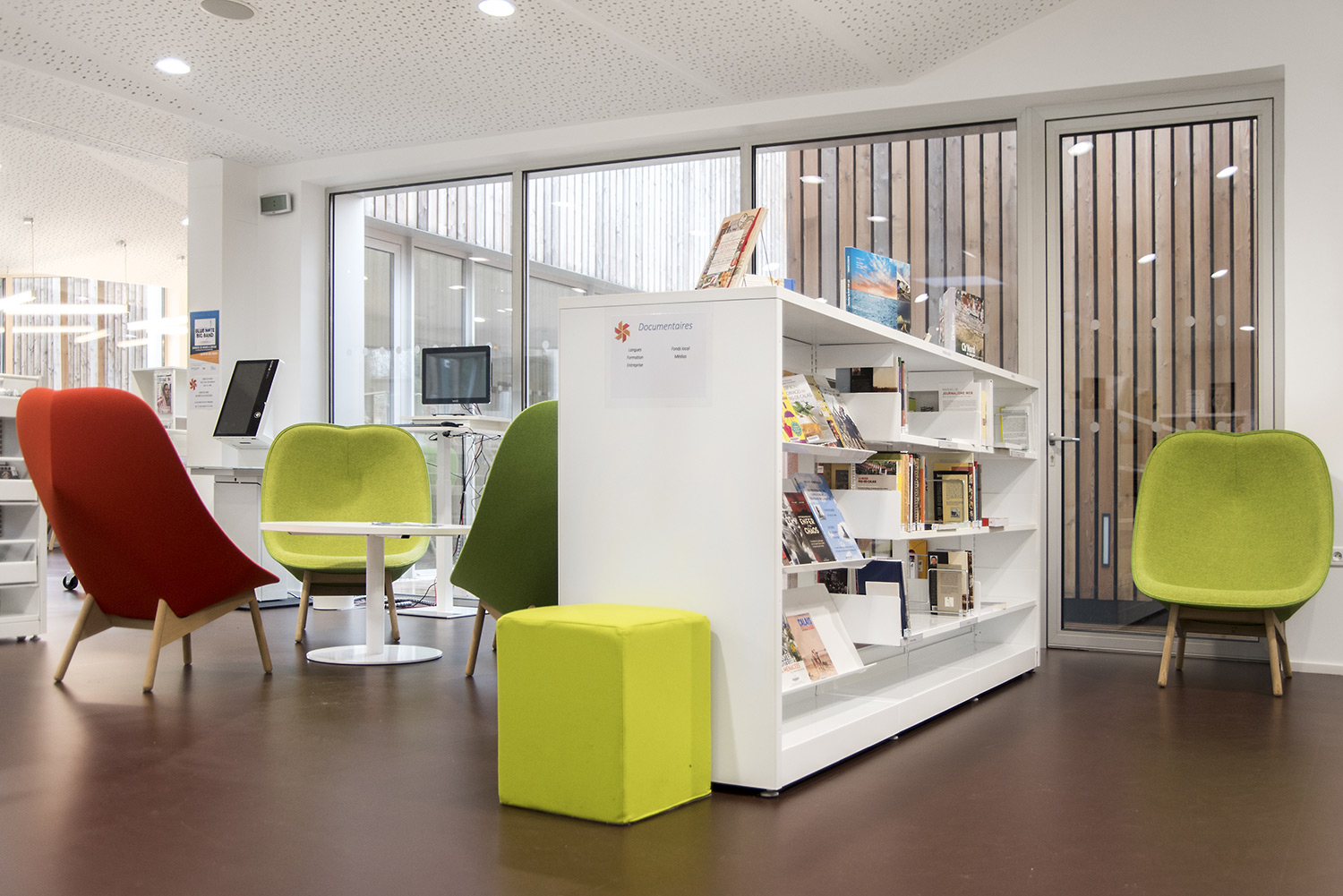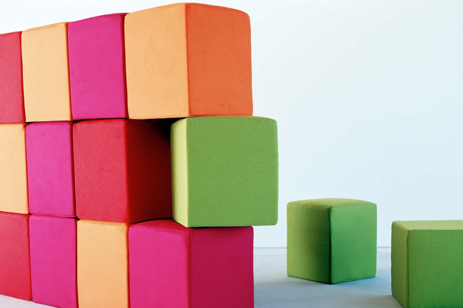 Pouf er formet som en terning og er nem at placere i ethvert biblioteksrum.