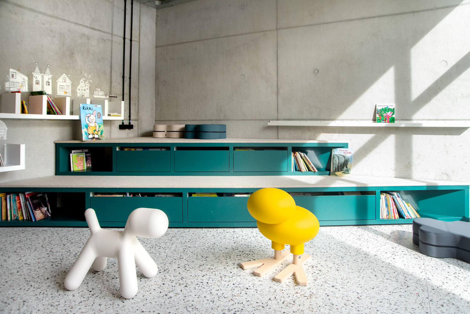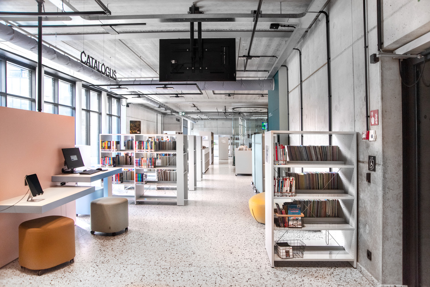 Lys og god plads er centrale elementer i det nye bibliotek i Geraardsbergen. Biblioteket er mere end blot et sted at låne bøger; det er et sted til læsning, studier, spil og meget mere. Der er mange siddemøbler at vælge imellem: borde og stole til arbejde eller studier, hyggelige og komfortable lænestole til afslapning og puffer, hvor man hurtigt kan slå sig ned med en god bog.