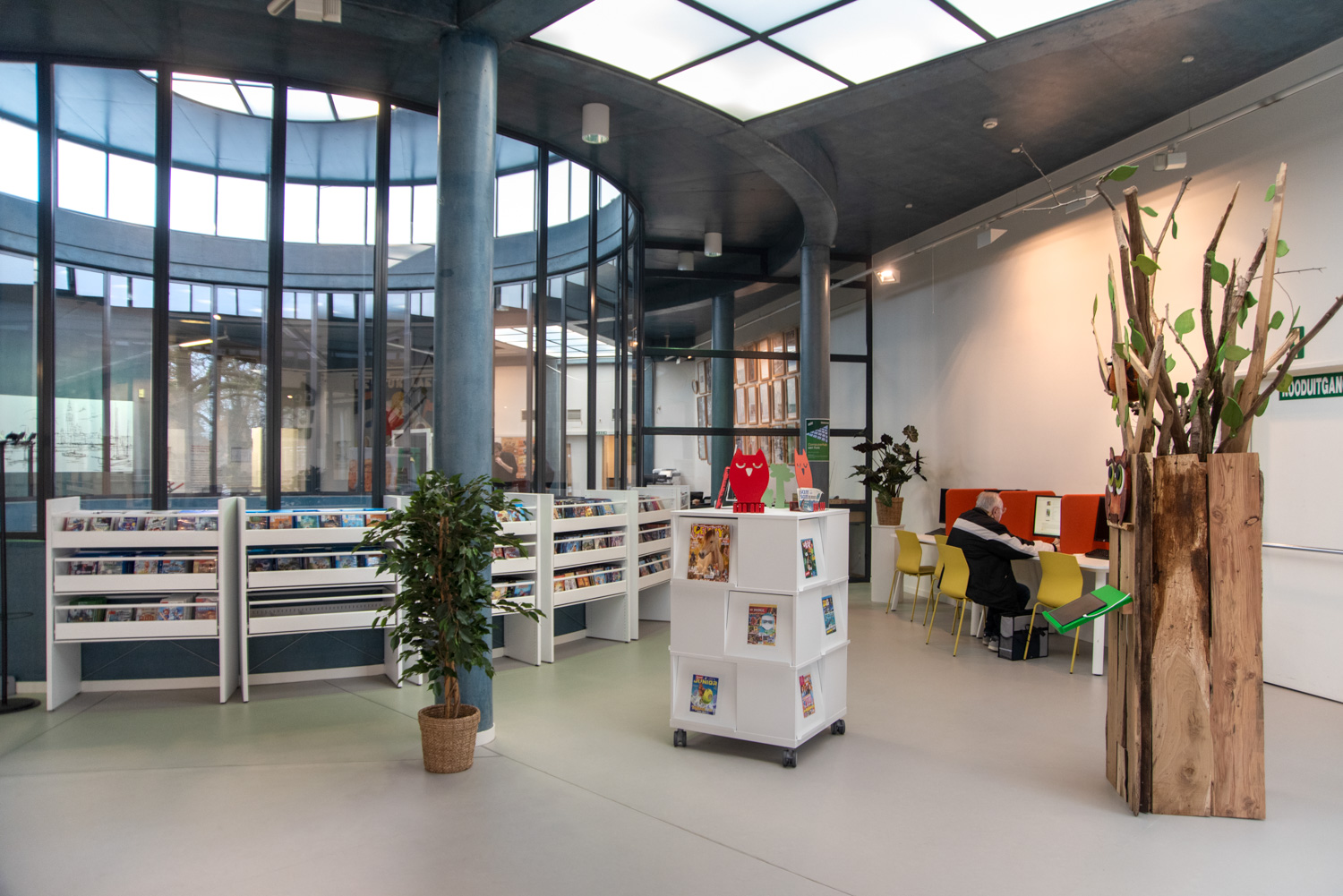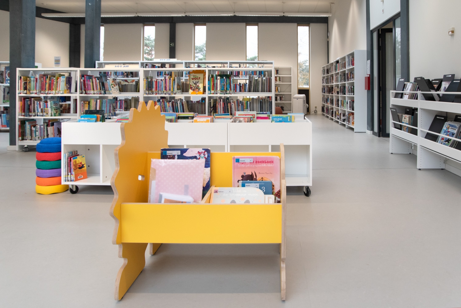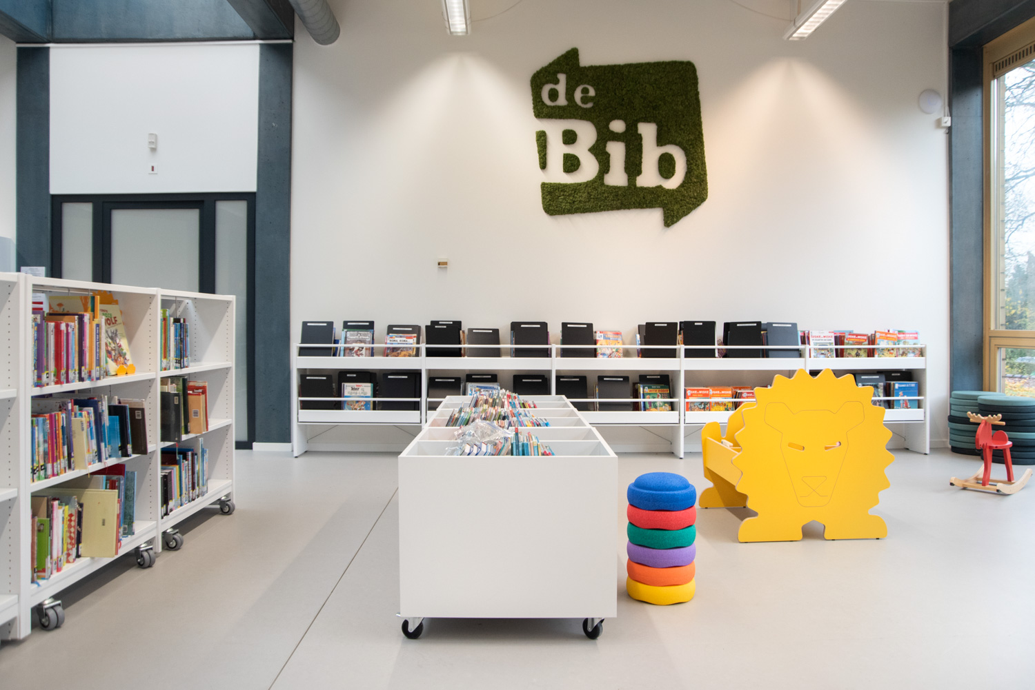 I børneafdelingen kan de yngste nu læne sig tilbage i en hyggelig læsehule med legende stole og puder formet som træstubbe. Til de voksne er der indrettet indbydende læsehjørner, rolige studiezoner og en alsidig læsesal.