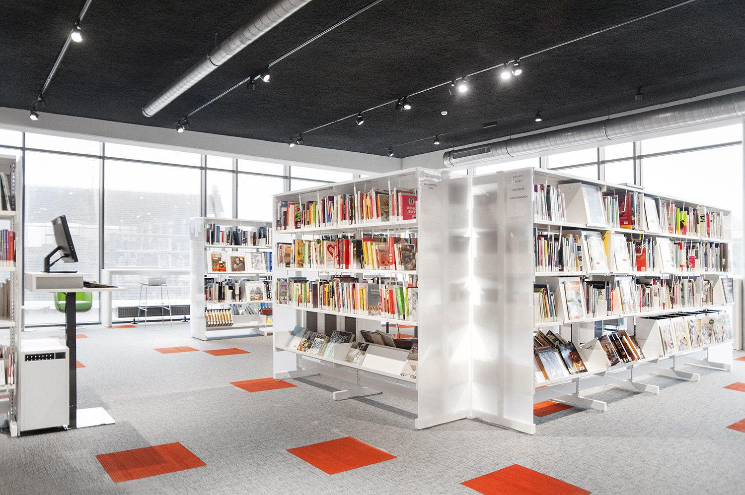Det nye kulturcenter De Warande huser et teater, turistinformation og bibliotek. Bygningen ligger imellem Bucolic søerne i Warande Park og det sprudlende by centrum. I samarbejde med kommunens arkitekt, Landmark rådgivning og den erfarne bibliotekar Herman de Meulemeester, har vi designet et bibliotek med fokus på en lys præsentation af udvalgte, attraktive kollektioner.