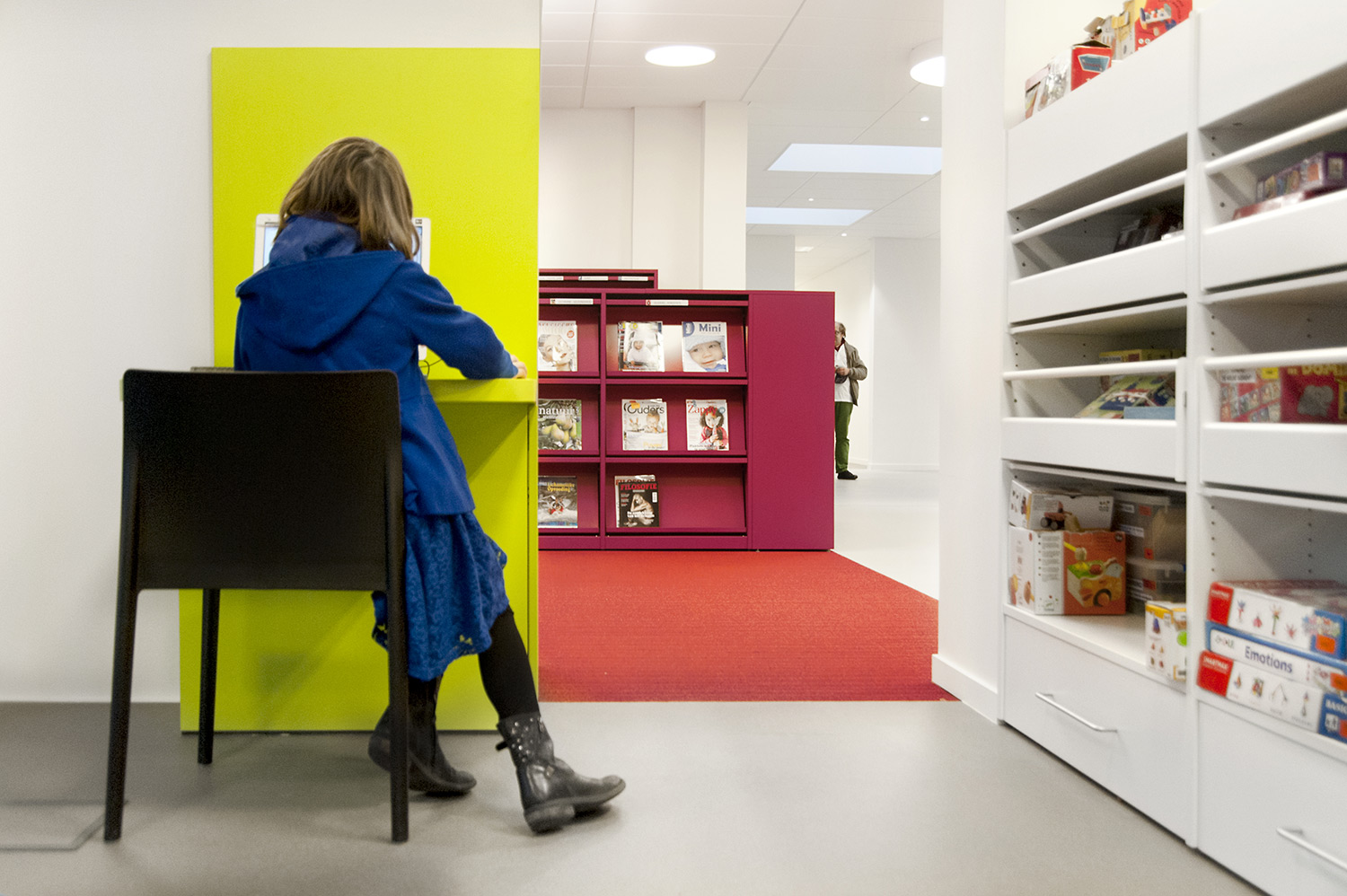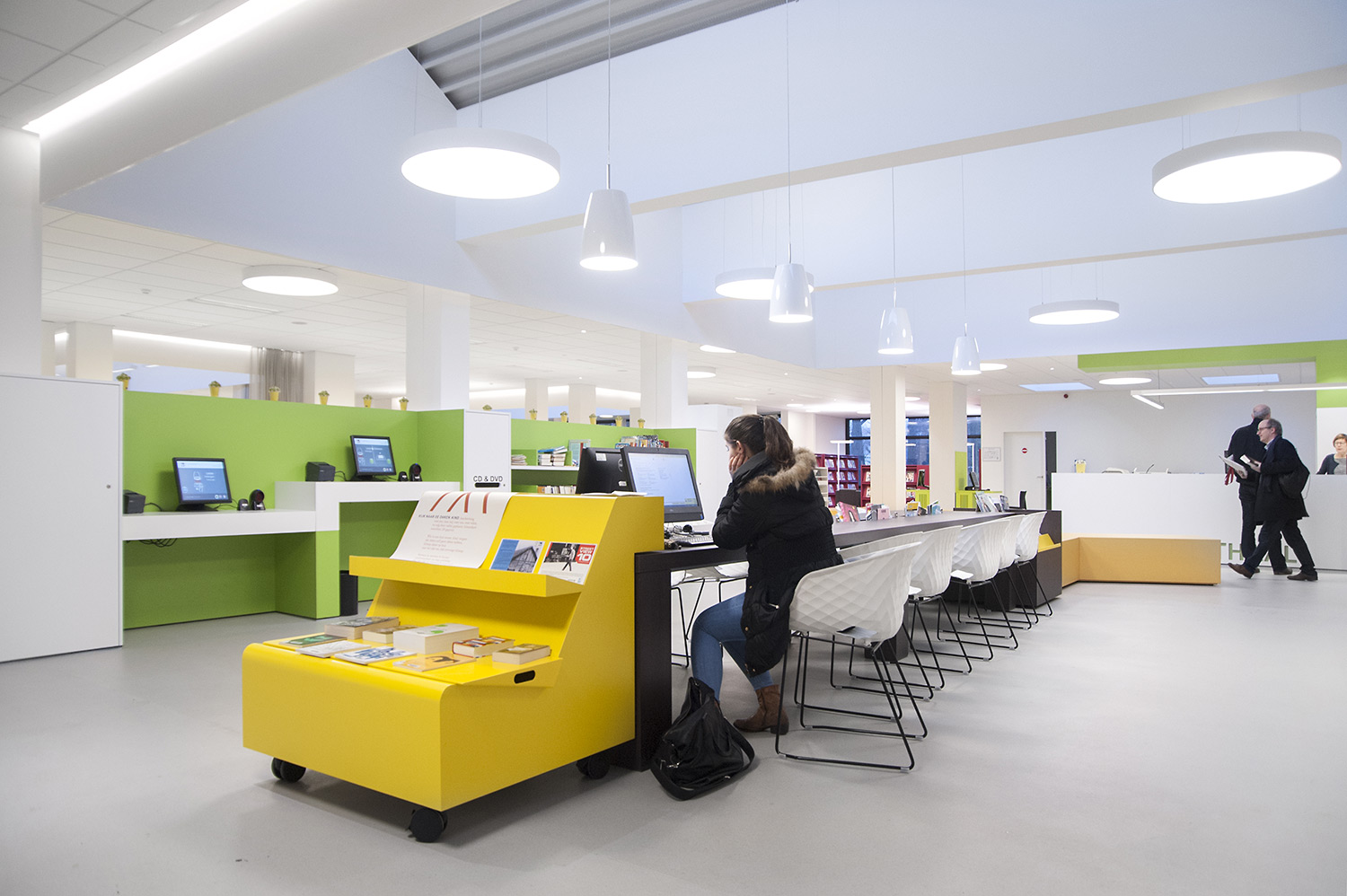 Dette projekt er resultatet af et samarbejde imellem forskellige parter: arkitekter, biblioteket, møbelproducent POTTEAu Labo og Schulz Benelux.