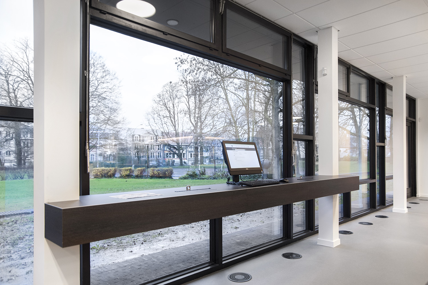 Den finurlige bygning, der er placeret i byparken, er blevet renoveret og fremstår nu som et stort transparent rektangel med fokus på naturligt lys. Arkitekten, Karen Nicolaes fra Archiles har øget arbejdsområdet til 2.000 m2.