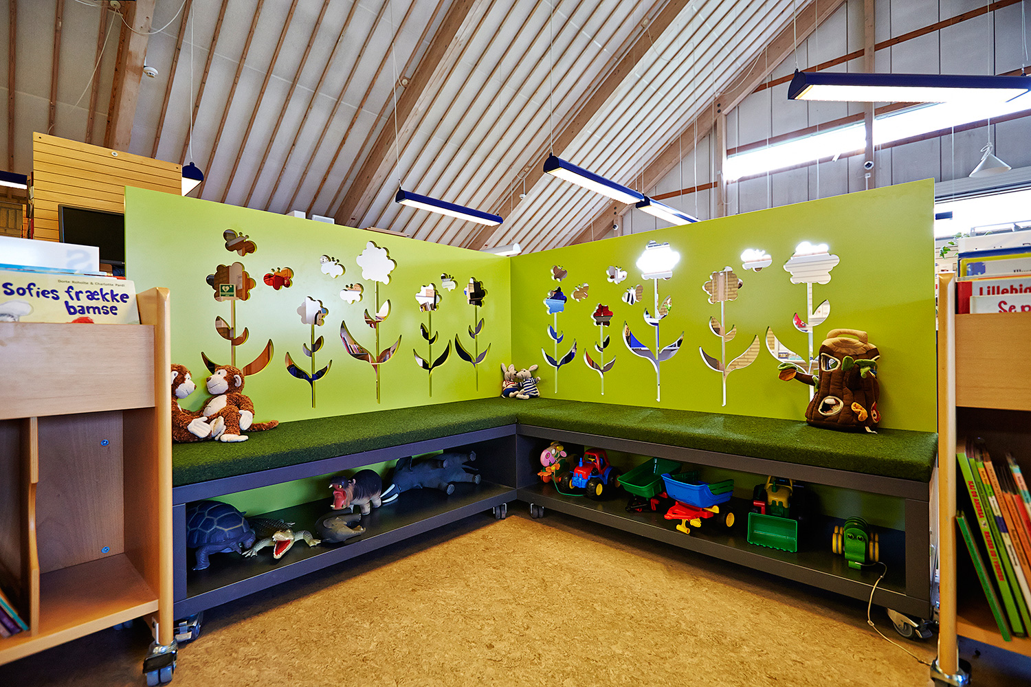I børnezonen er der indrettet med specialtegnede møbler.