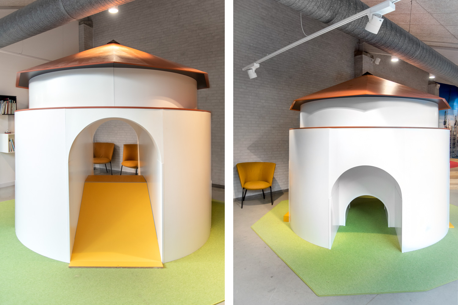 For de mindre børn har fokus været at introducere et legeforum med plads til forældre. Her ses blandt andet krudttårnet, som børnene kan kravle og rutsje på - som samtidig er en miniature af byens varemærke. De turkise læsehuler har fået koøjer, som giver en følelse af at være under vand. Der er gjort plads til, at forældre eller bedsteforældre kan sidde ved siden af og observere børnene på diverse hygge- og loungemøbler, og biblioteket har desuden fået helt nye madpakkeborde og en garderobe.