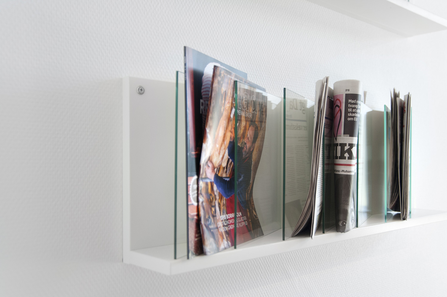Farver på udvalgte møbler, vægge og tæpper bringer liv til bibliotket i en rolig og afslappet atmosfære.