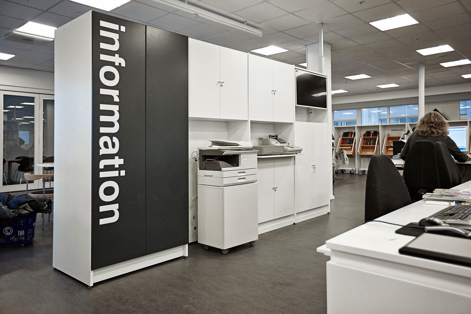 Gennem kreativ og dygtig planlægning blev resultatet et rumligt og imødekommende bibliotek med såvel specifikke stille- og læsearealer samt områder med plads til snak og diskussioner.