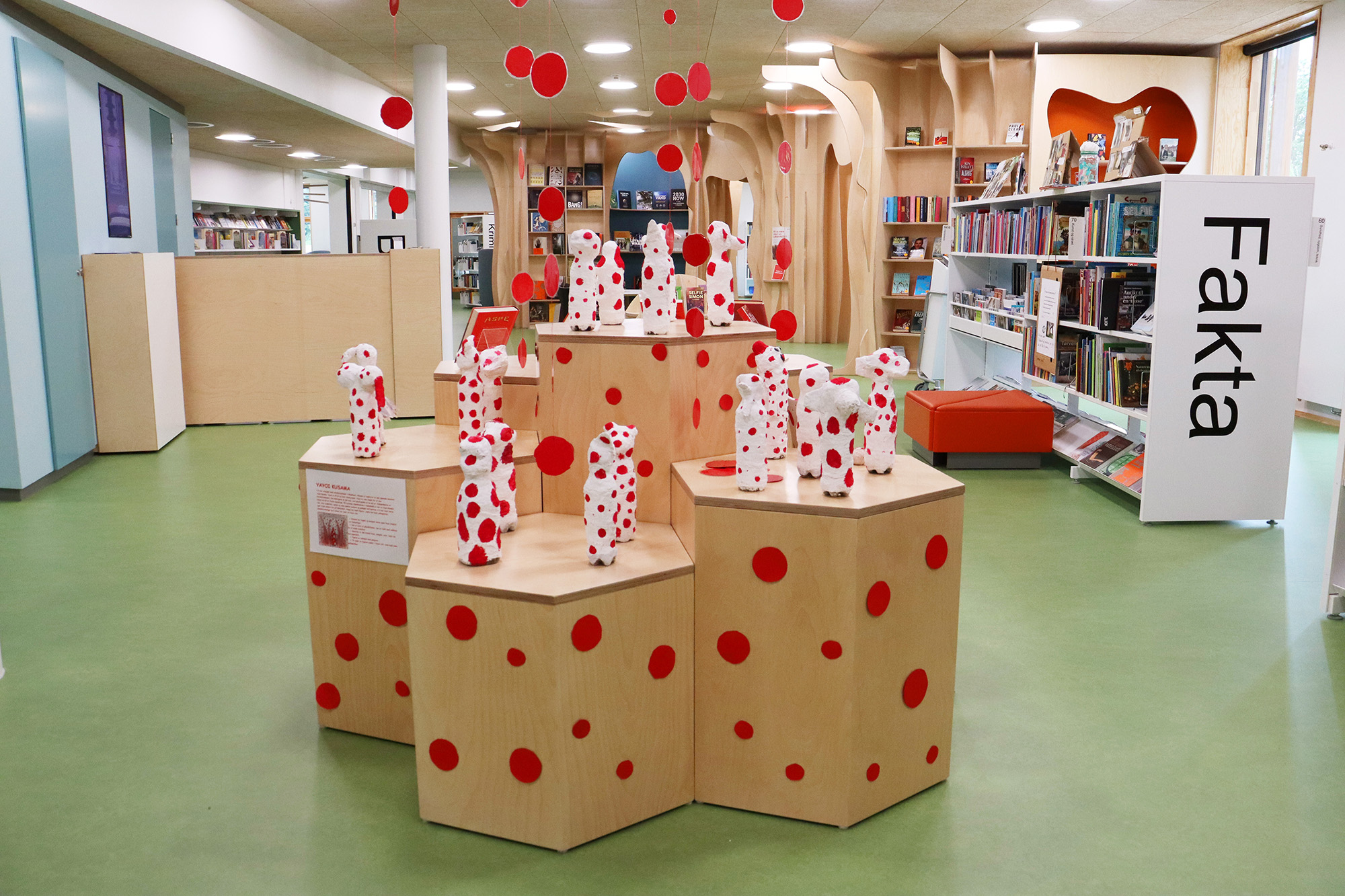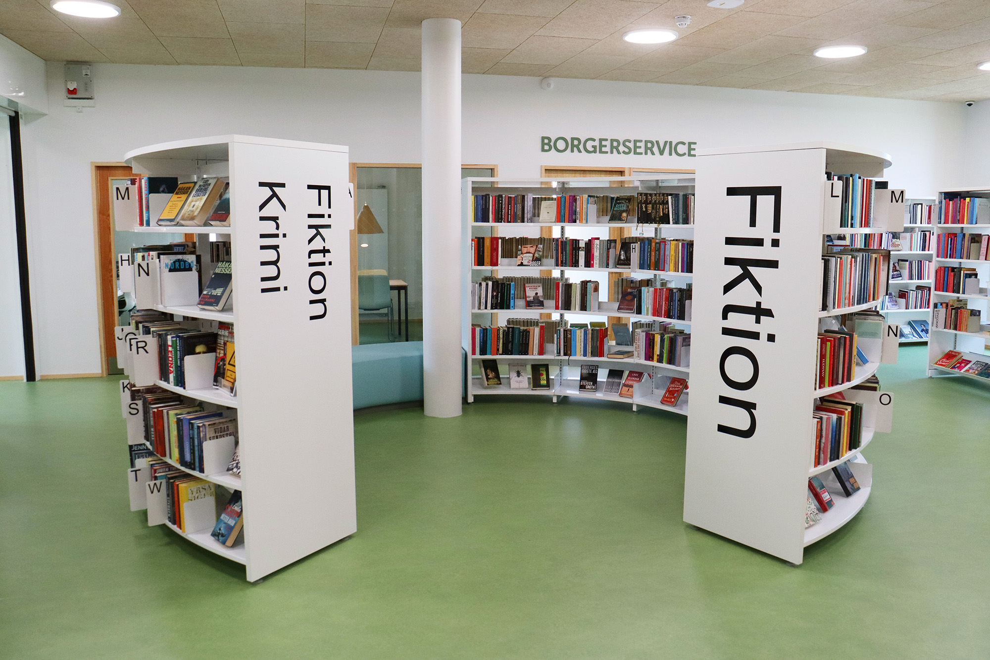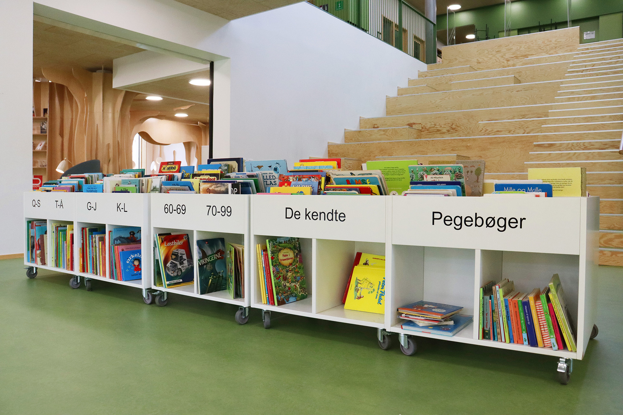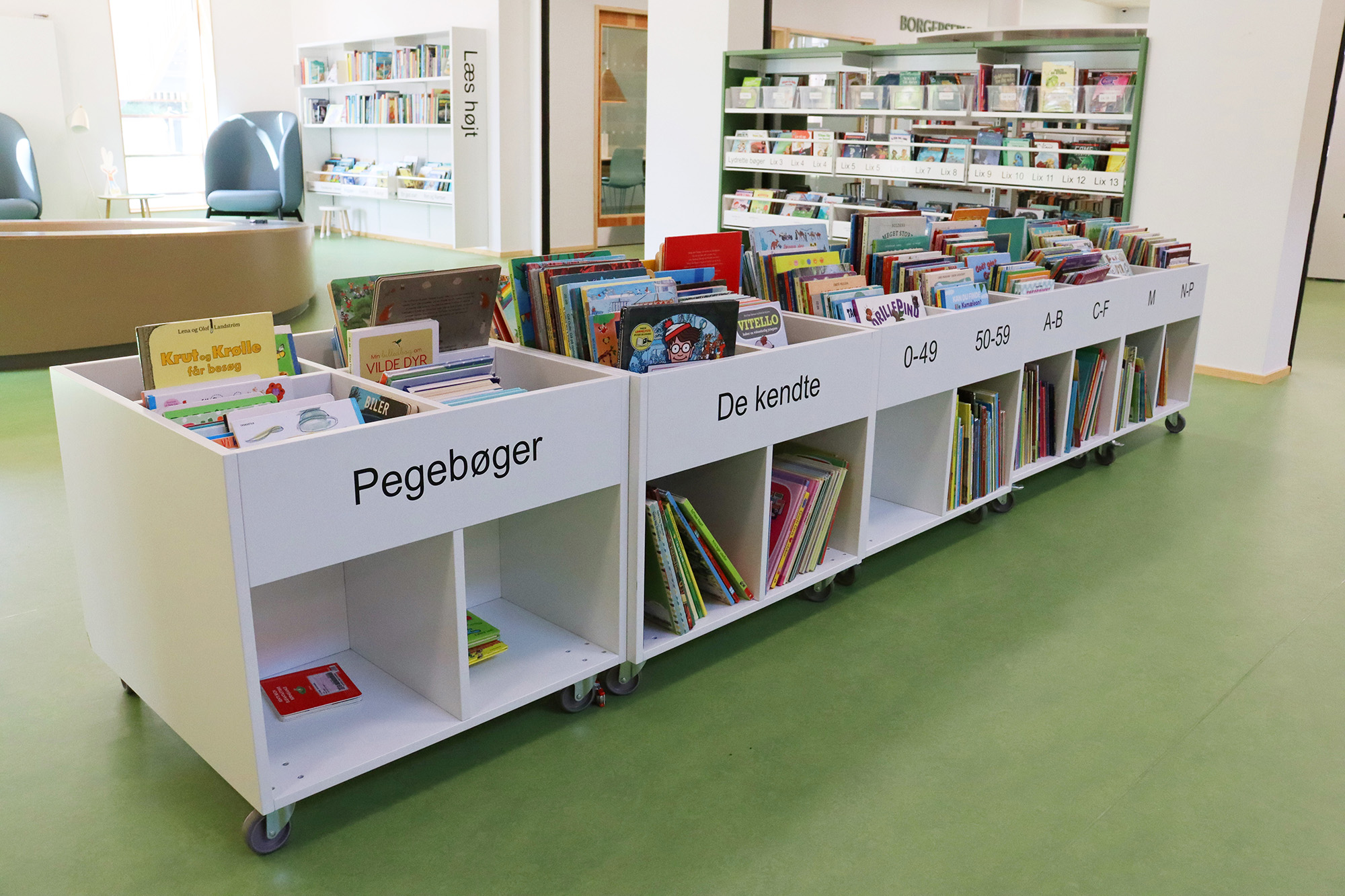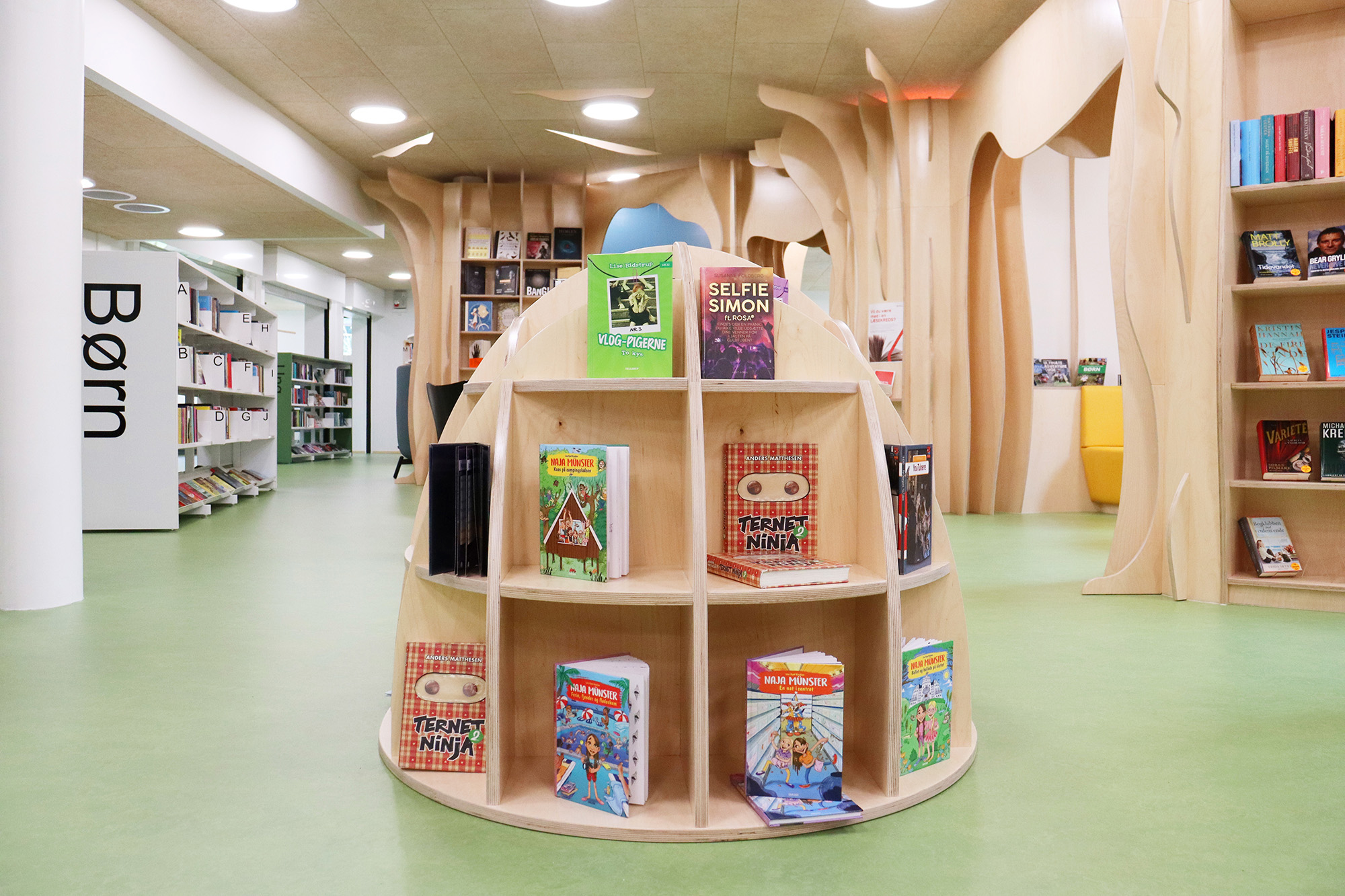 ”Biblioteket er tæt på hjerterummet for hele bygningen og bliver brugt mere, fordi det er en del af en større bygning. Det er – og skal være – børnene, der fylder meget, men der skal stadig være plads til alle. Vi arbejder meget med biblioteket som et organisk rum, der skal kunne tilbyde noget ekstra og overraskende. Det synes vi, i høj grad er lykkes,” fortæller bibliotekar Frederik Christian Nielsen.