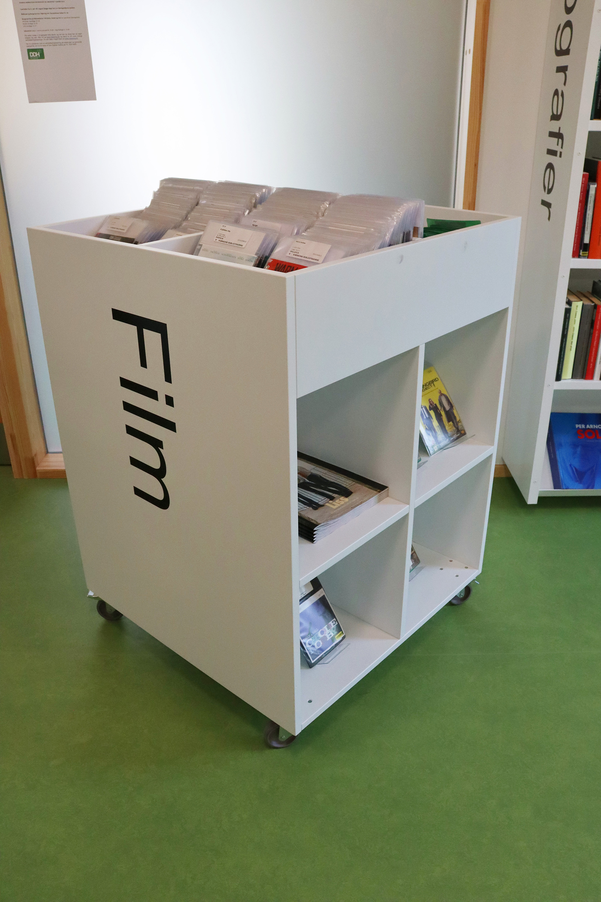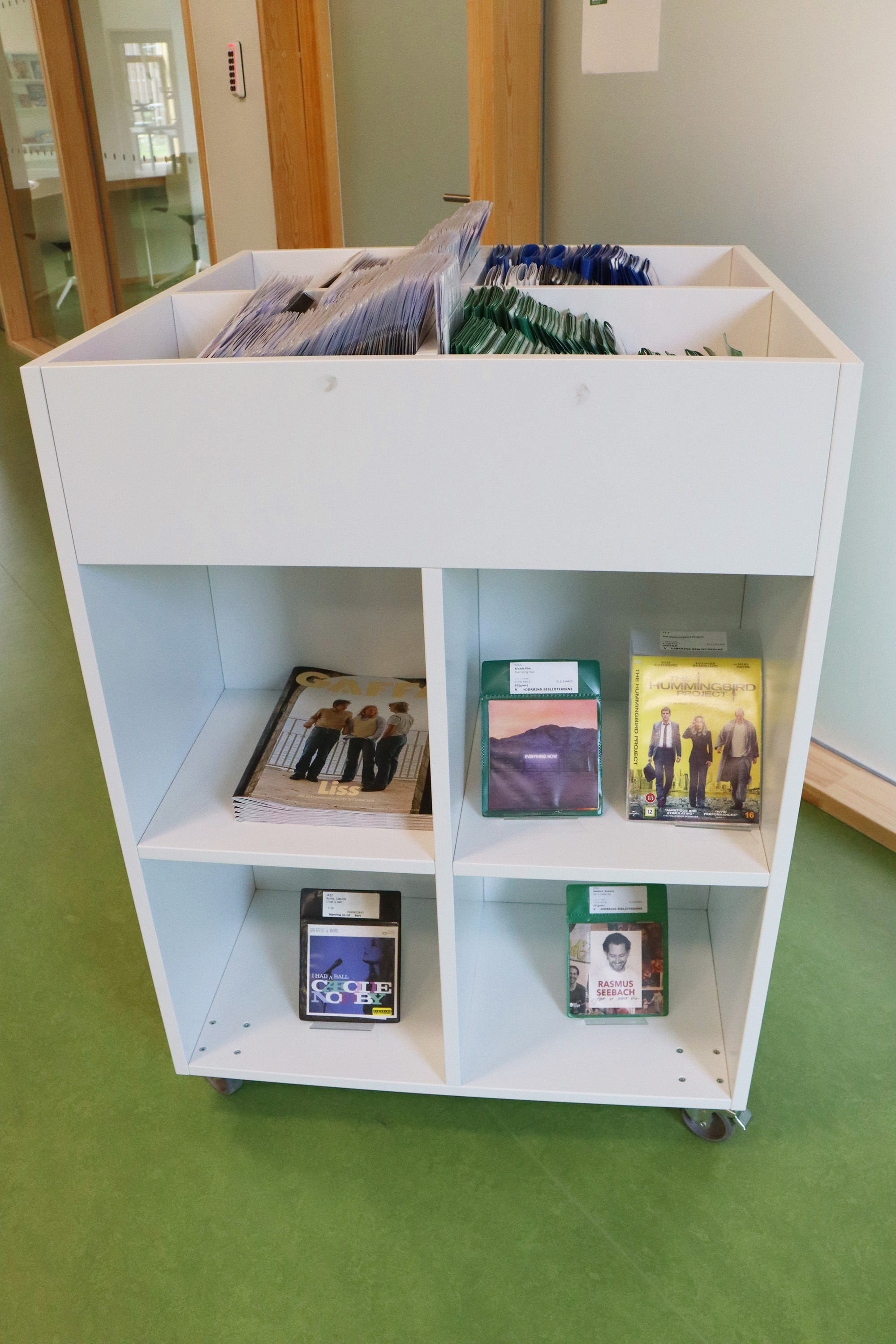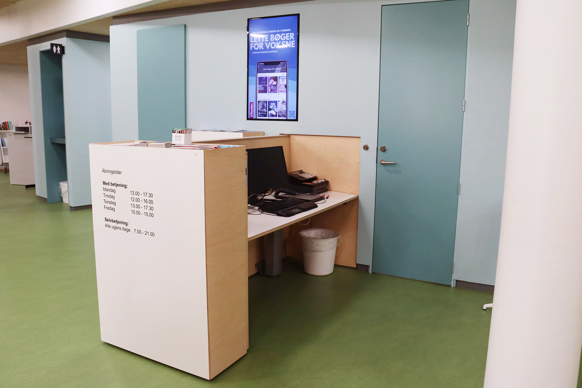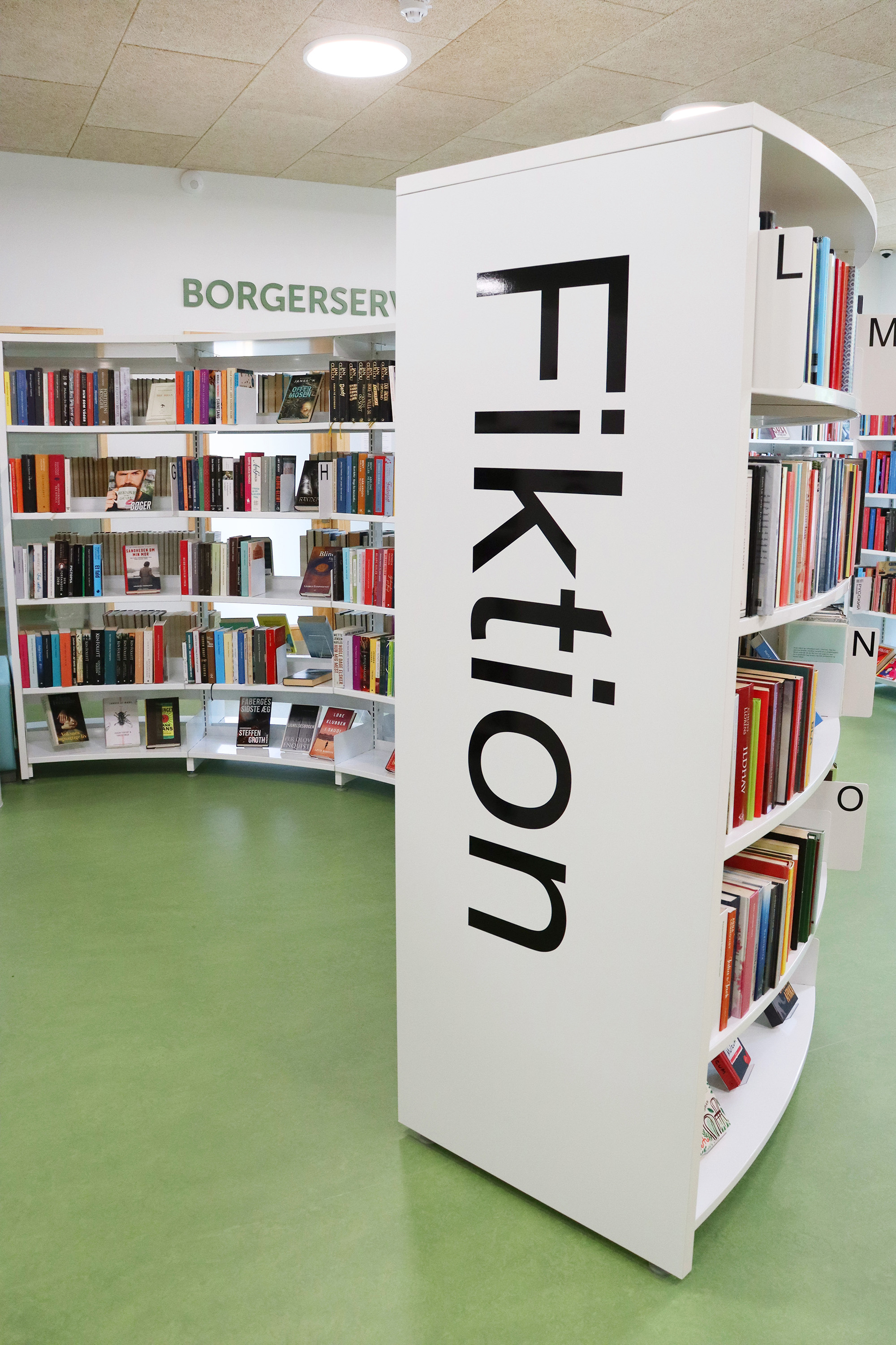 ”Biblioteket er tæt på hjerterummet for hele bygningen og bliver brugt mere, fordi det er en del af en større bygning. Det er – og skal være – børnene, der fylder meget, men der skal stadig være plads til alle. Vi arbejder meget med biblioteket som et organisk rum, der skal kunne tilbyde noget ekstra og overraskende. Det synes vi, i høj grad er lykkes,” fortæller bibliotekar Frederik Christian Nielsen.