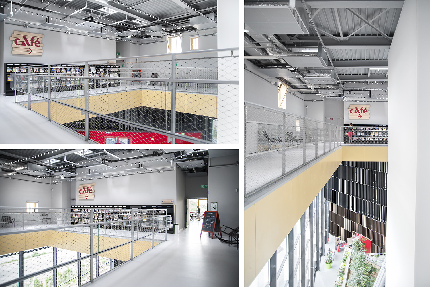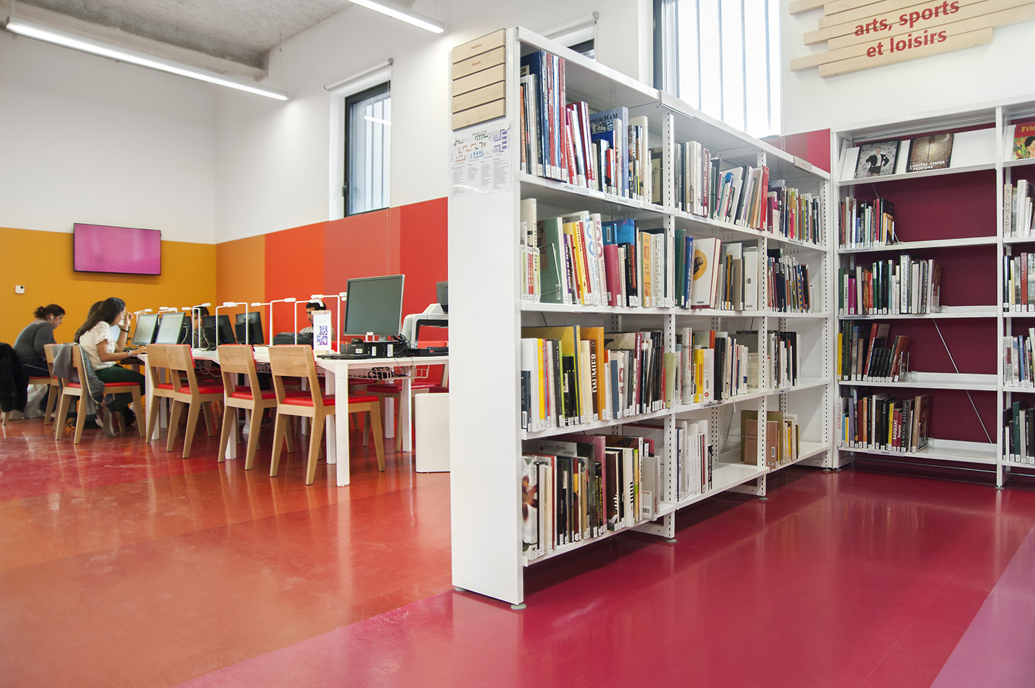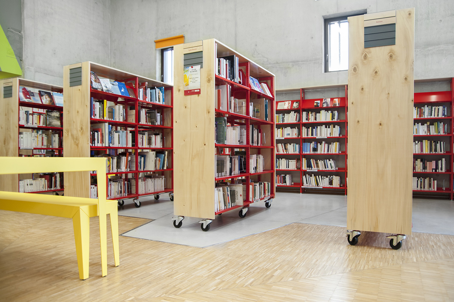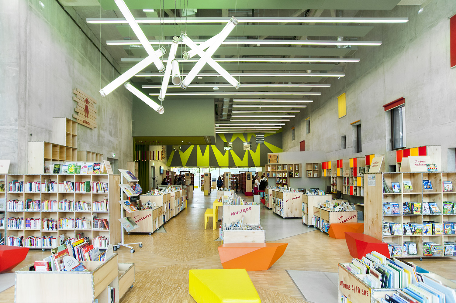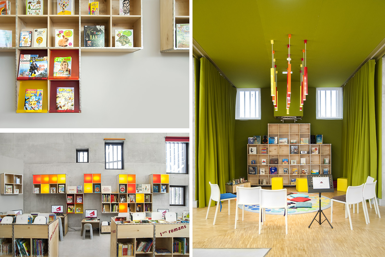 Biblioteket er bygget op omkring 3 uiverser: Fantasi, Skabelse og Forståelse. "Skabelse" er rum tilegnet tegnesier, biograf, musik og kunst. "Forståelse" dækker hovedområderne inden for viden og tilbyder rum og samlinger, der er dedikeret til den skriftlige kulturarv og historie i Charente regionen og tilbyder private og kollektive rum til læsning og studier. "Fantasi" bringer børn og litteratur sammen og giver adgang til gårdspladsen og auditoriet.