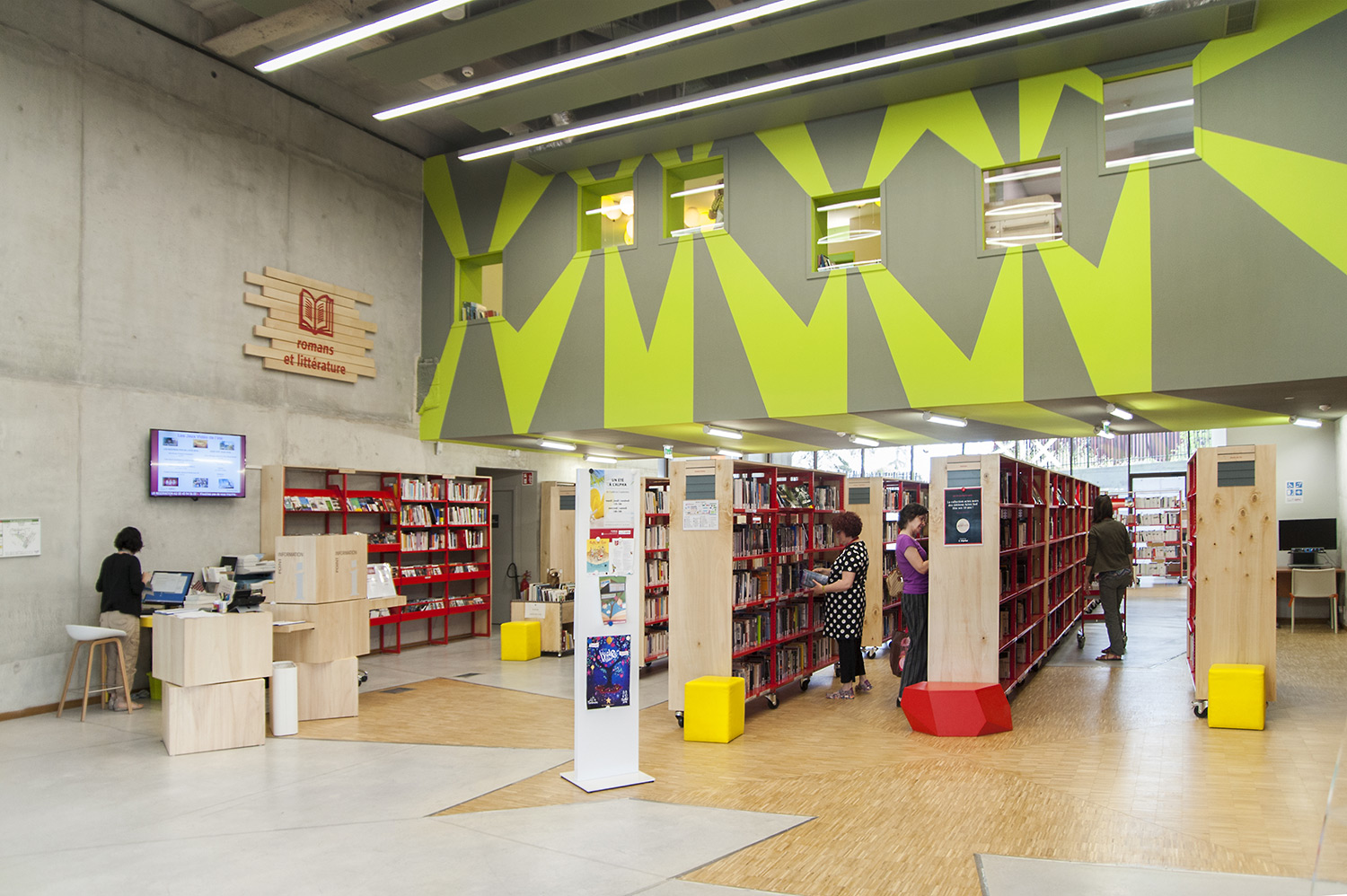 Bygningen, der giver en unik udsigt over byen, er tegnet af Françoise Raynaud fra arkitektbureauet Loci Anima Architecure og består af fem stablede kasser, der former et "A" set fra oven - A for Alpha! Den tilbyder 4.000 m2 offentlige områder og tjenester, herunder auditorium, udstilling, café og biblioteksmaterialer med en samling på 150.000 bøger, CD'er, DVD'er og videospil samt 18.000 tegneserier.