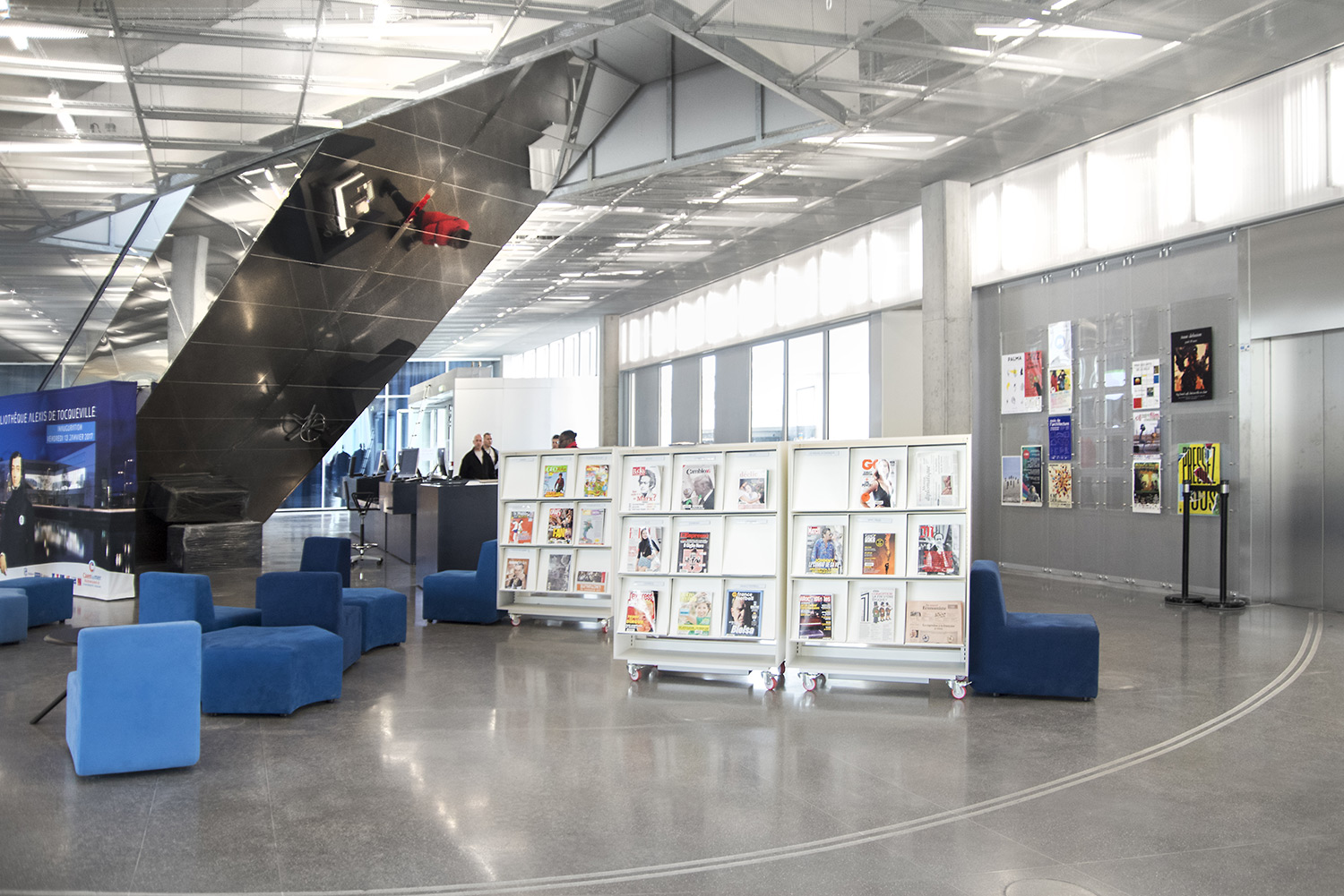 Det nye bibliotek Alexis de Tocqueville i Caen-la-Mer, tegnet af den prisbelønnede arkitekt Rem Koolhaas fra det internationale anerkendte arkitektfirma OMA, blev indviet d. 13. januar 2017 af den franske kulturminister Audrey Azoulay. Hun var meget begejstret for det nye bibliotek og kaldte det ”et af de smukkeste biblioteker i hele Frankrig”.