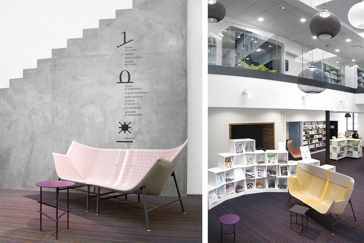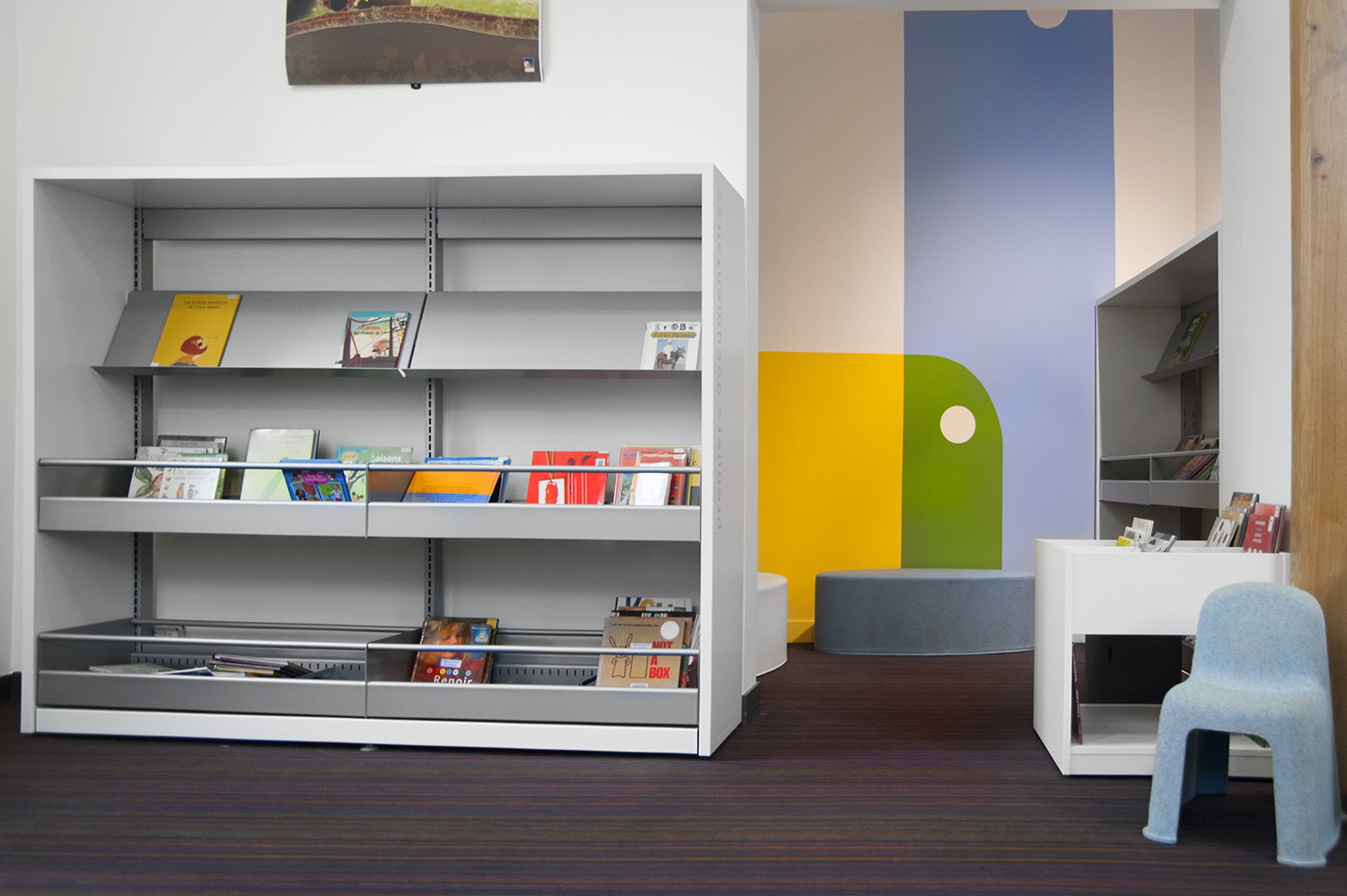 Produkter anvendt til Lagirafe bibliotek i Mont-sur-Meu, Frankrig