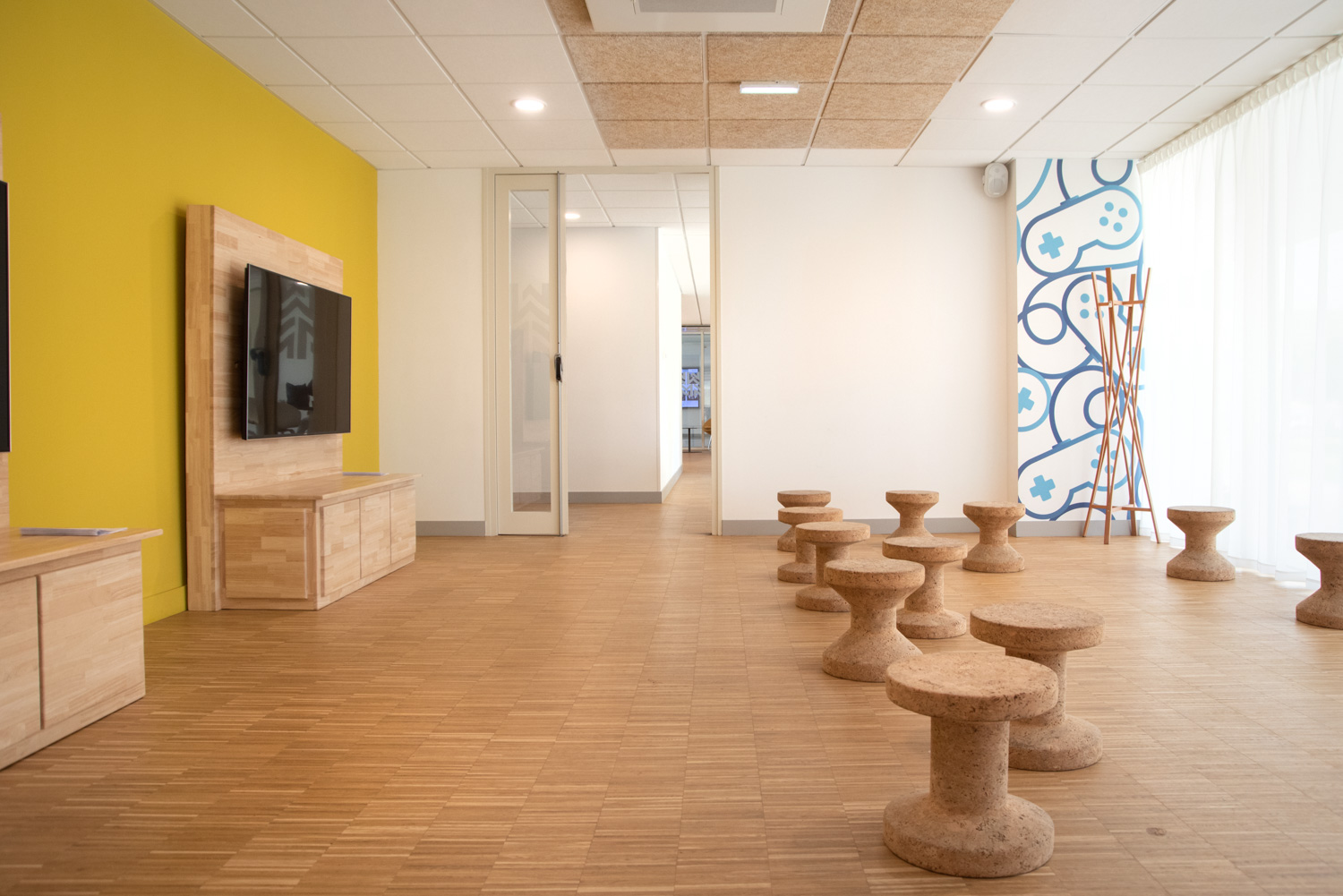 Biblioteket inkluderer et auditorium med plads til 100 mennesker, arbejdsområder og et område med bøger og trykte medier samt brætspil. Der er desuden et område dedikeret til videospil.