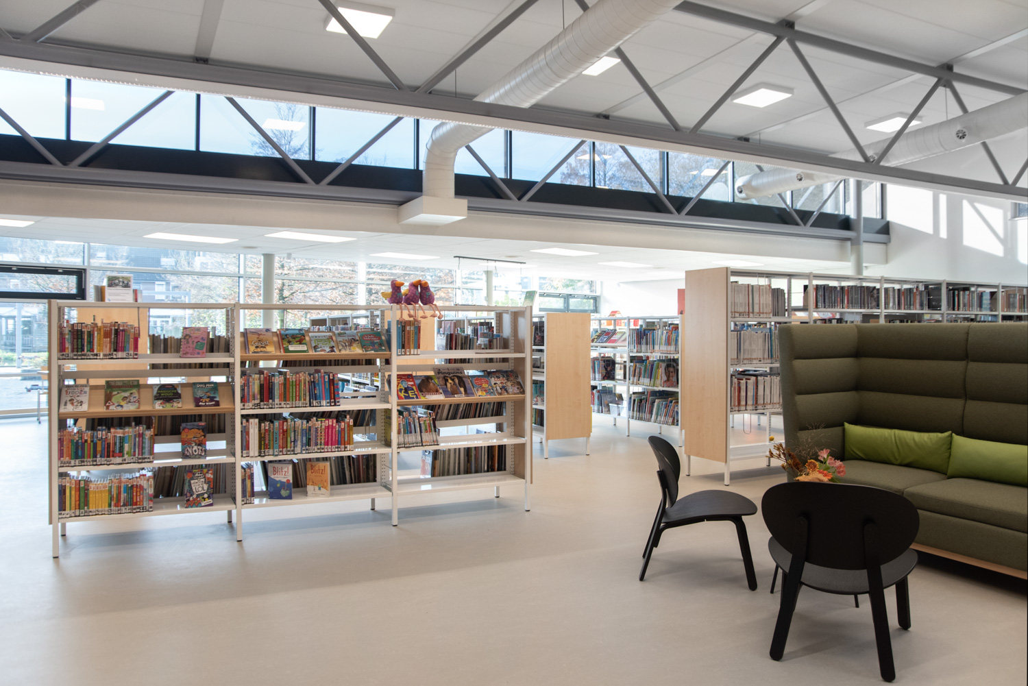 Det renoverede bibliotek i Wateringen har fået mere plads og bedre overblik og kan nu tage imod større grupper af mennesker, uden at de forstyrrer hinanden.
