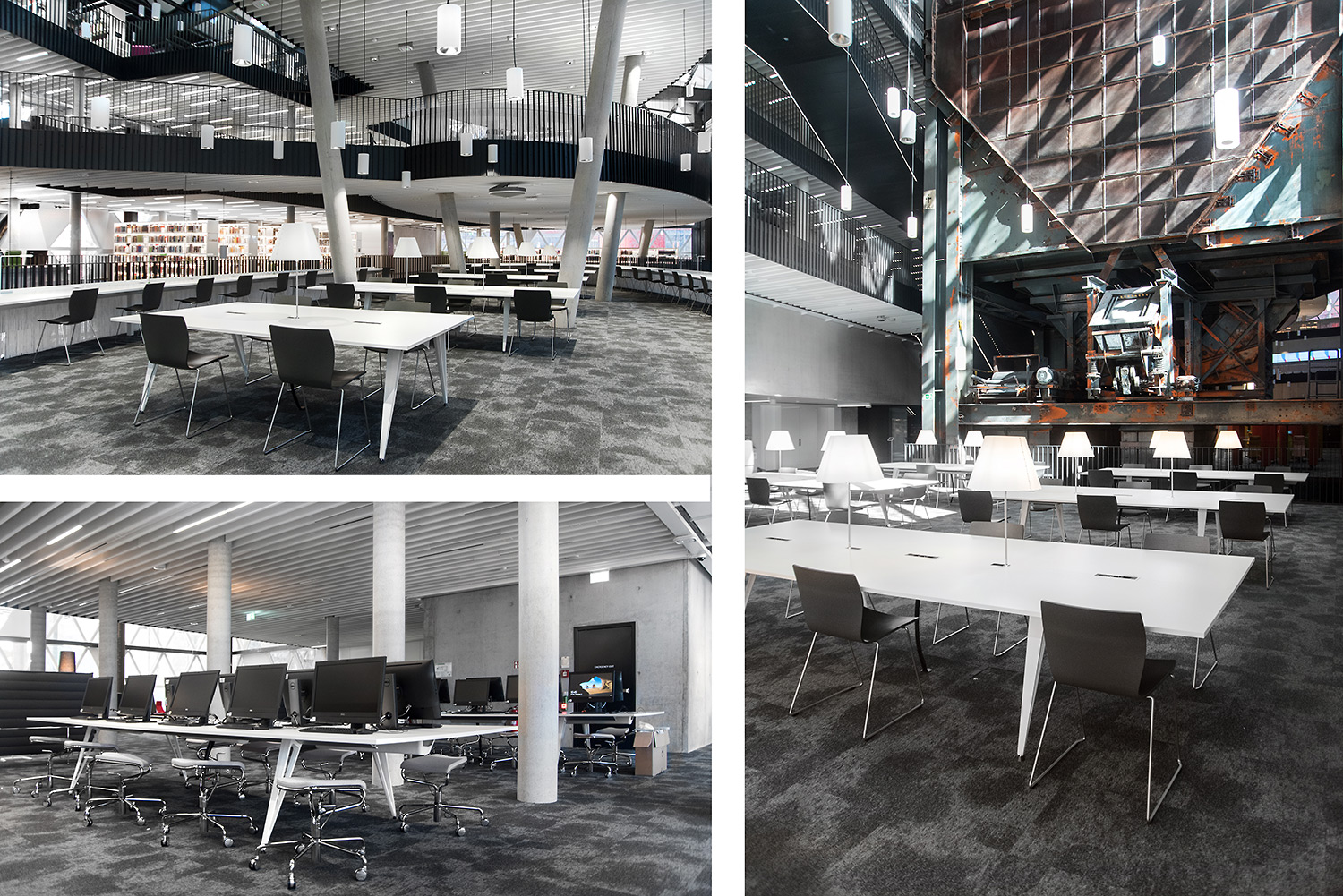 Den enestående arkitektur sammen med møbler af høj kvalitet skaber en attraktiv og fleksible ramme, der gør det videnskabelige bibliotek til et fornøjeligt sted at mødes, arbejde og dele viden.