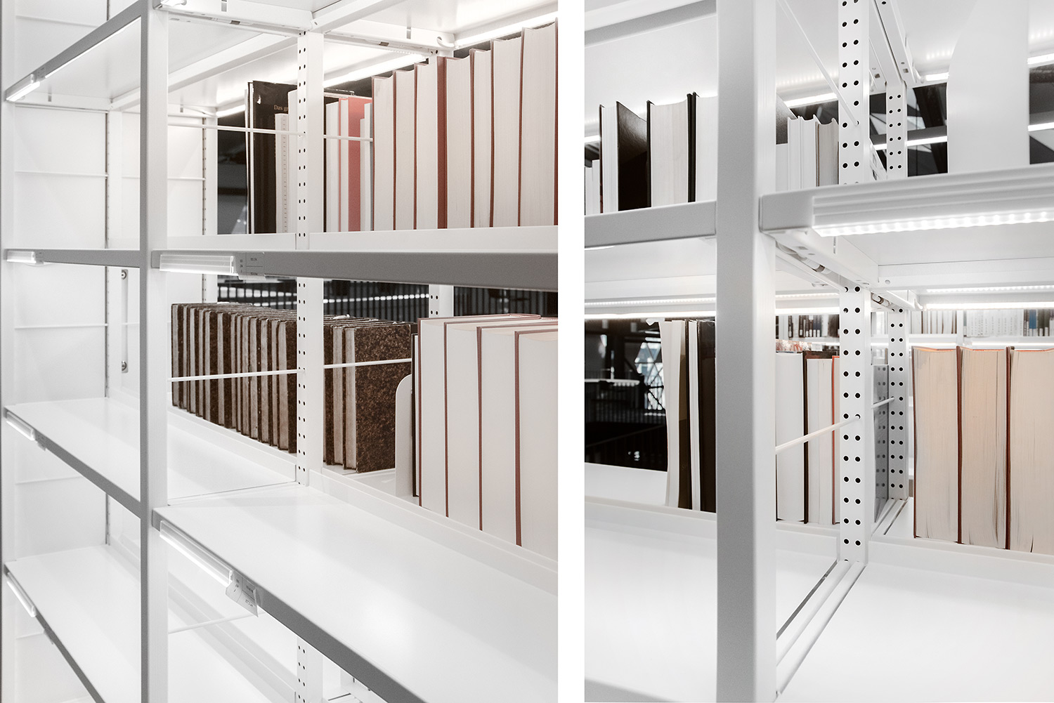 Med dets klare design og praktiske brugervenlighed forsyner vores Uniflex reolsystem med integreret LED-lys biblioteket med 10,7 km hyldekapacitet fordelt på 5 etager.