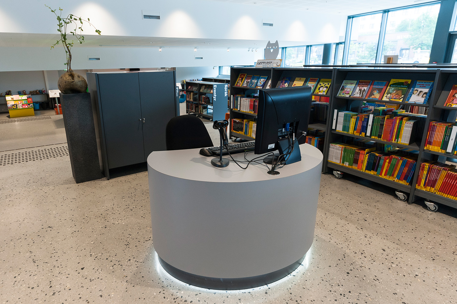 Vores søsterselskab, BS Eurobib, har indrettet biblioteket med reoler, møbler og interaktive løsninger.