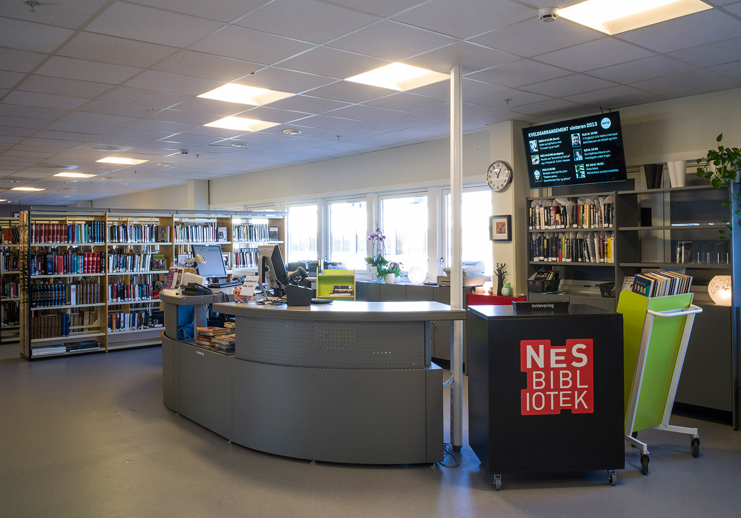 Nes bibliotek i Årnes flyttede i januar 2013 i store, nye lokaler. De ansatte har med deres kreativitet og engagement skabt et helt unikt bibliotek, hvor børne- og ungdomsafdelingen skiller sig specielt ud. Her er investeret i nye reoler; både lige med hjul samt halvcirkler.