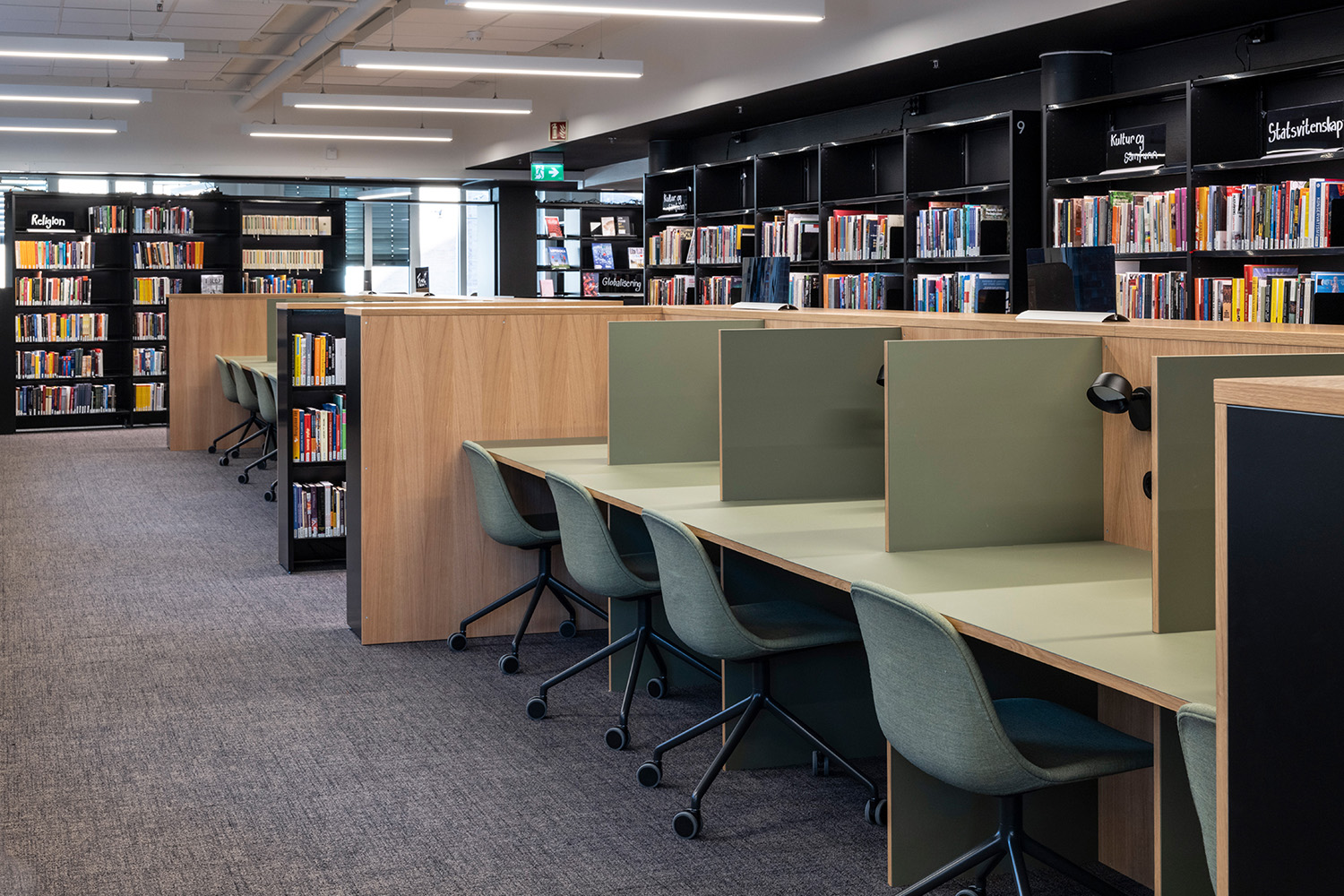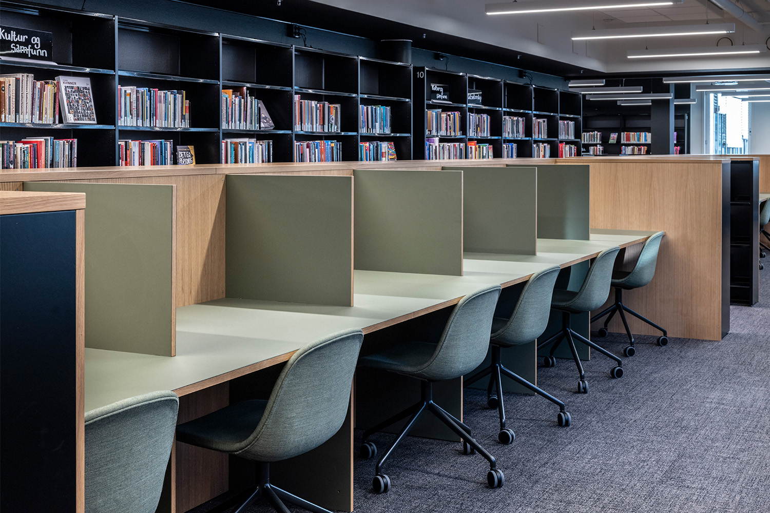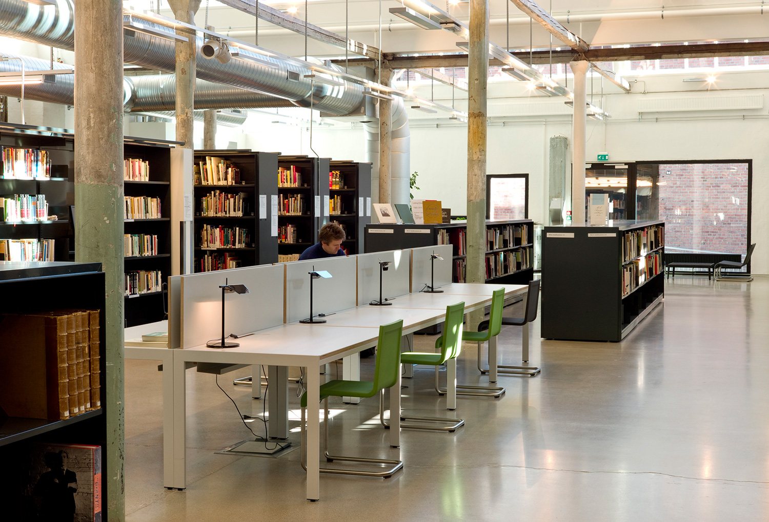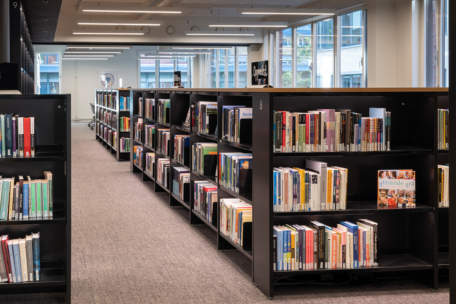 The old factory has a total area of 40,000 sqm and the library is an important part. With a mix of old and new, the design gives room for creativity and cares for the history. The library is one of the most modern in Norway and a vital resource for students and faculty.