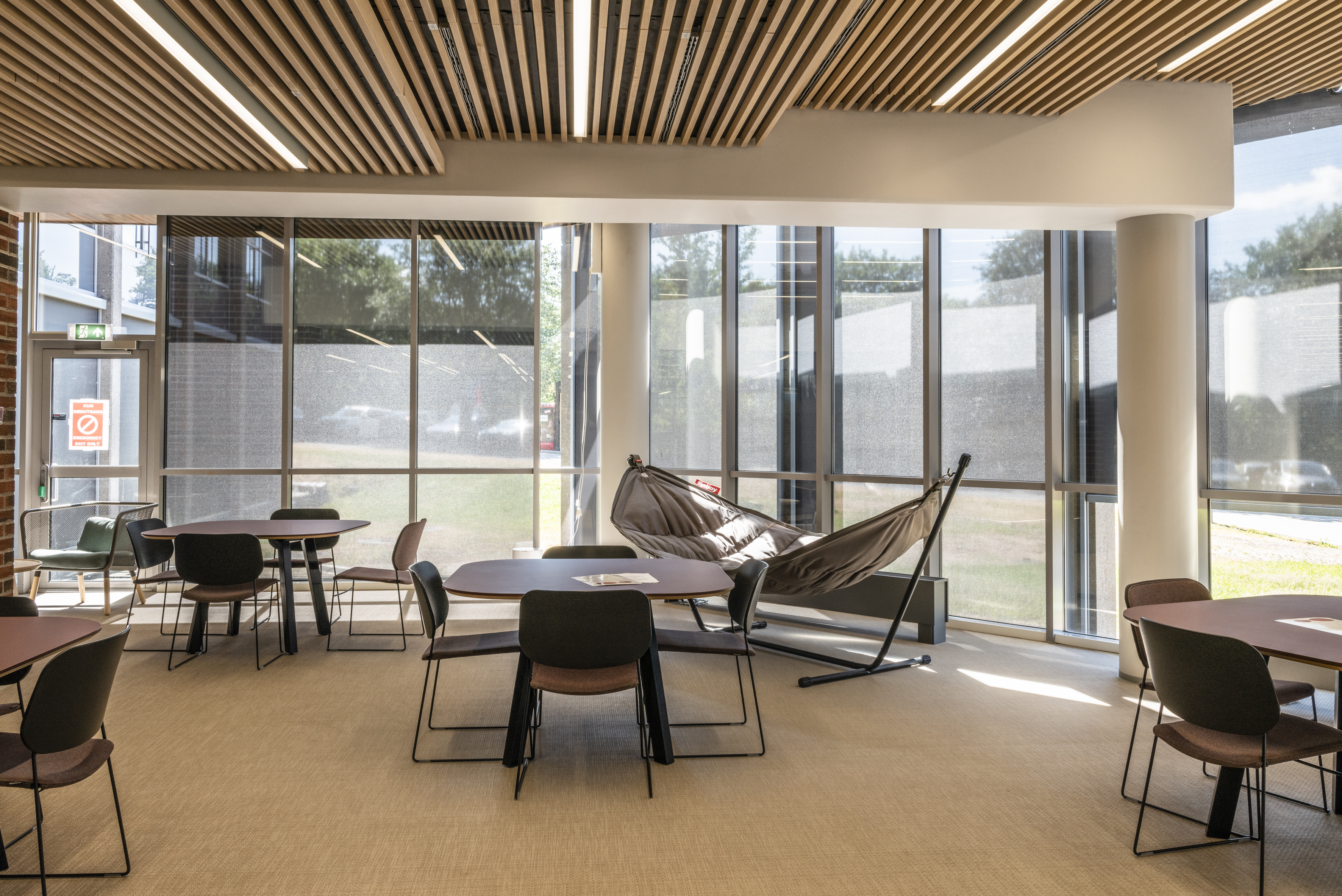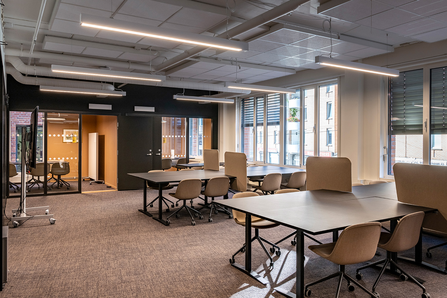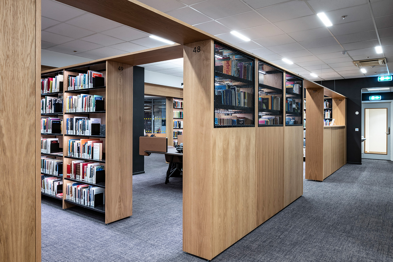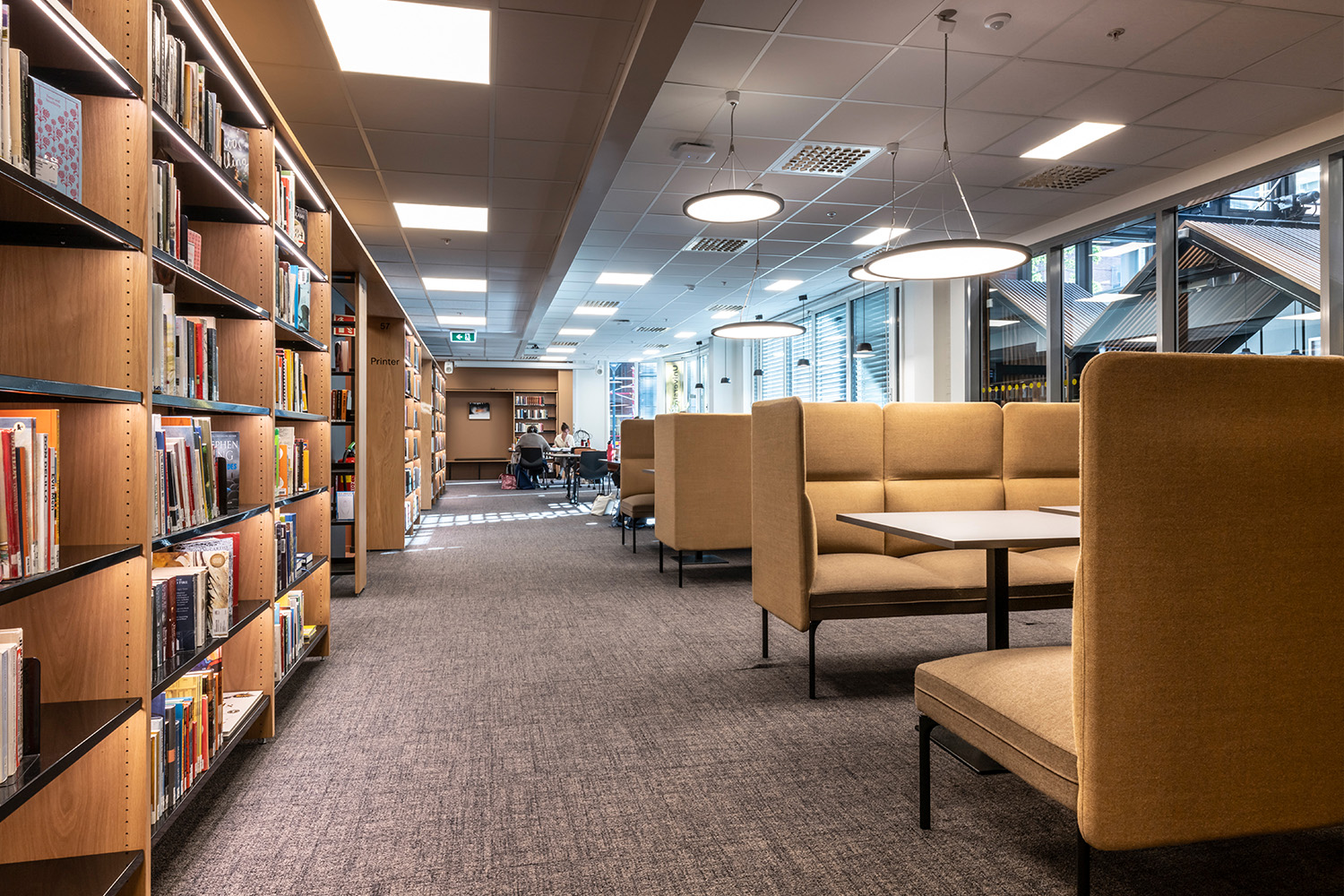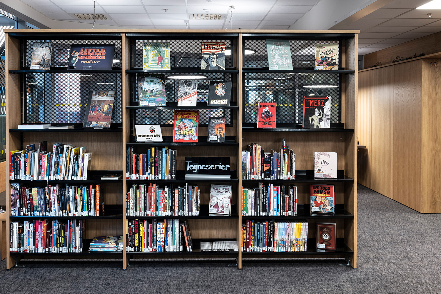The old factory has a total area of 40,000 sqm and the library is an important part. With a mix of old and new, the design gives room for creativity and cares for the history. The library is one of the most modern in Norway and a vital resource for students and faculty.