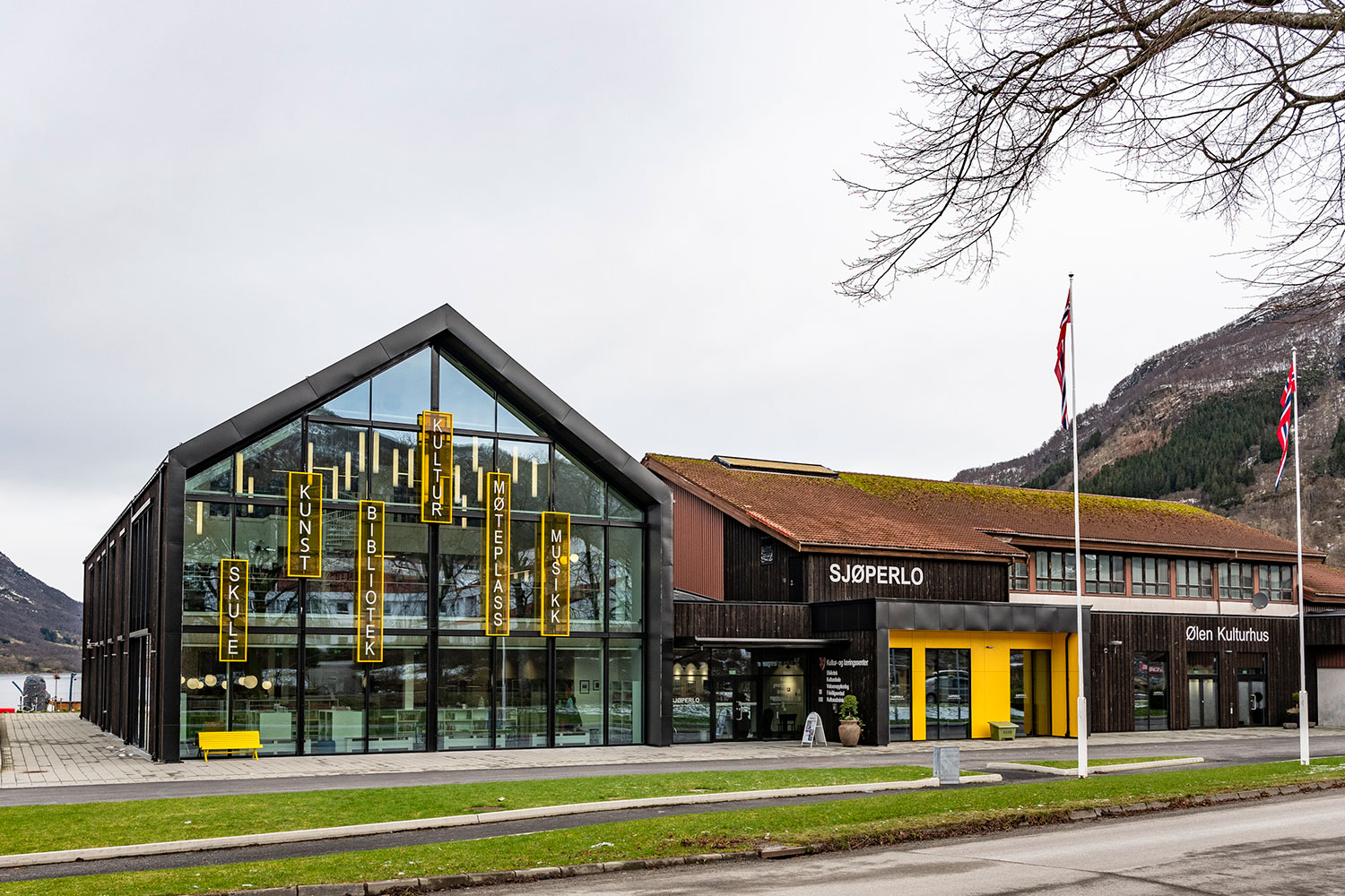 I tilknytning til det eksisterende kulturhus i Ølen, er biblioteket flyttet ind i en ny og moderne tilbygning. Det nye kultur- og læringscenter er fordelt på tre etager, der er forbundet af en elegant vindeltrappe.