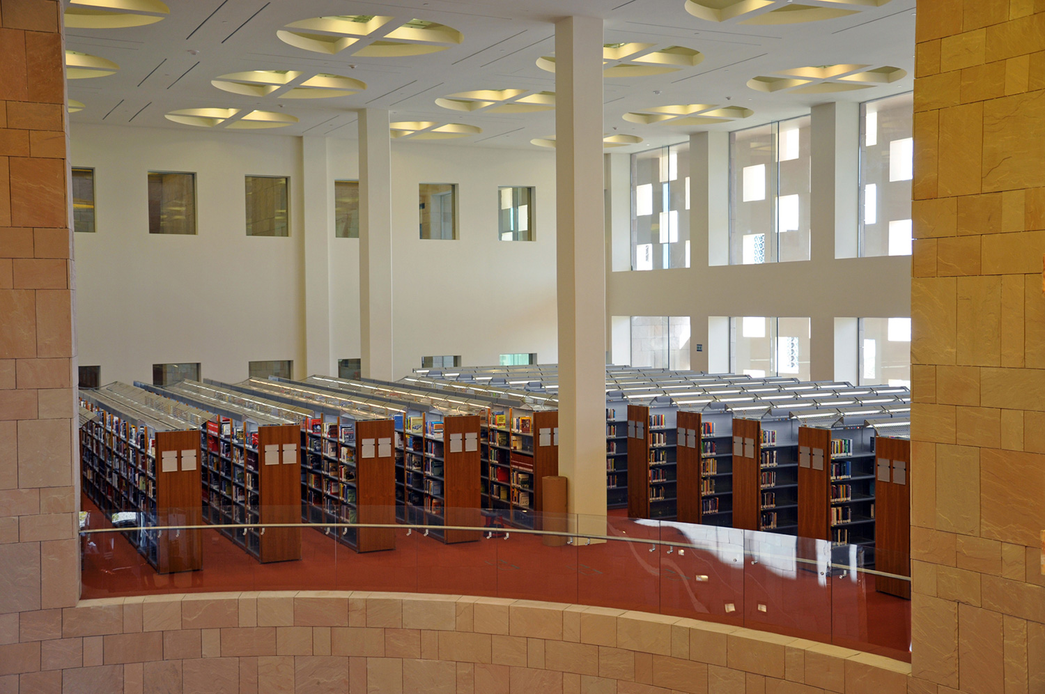 Bygningen har en størrelse på 33.000 m2 og indeholder en tre etagers gårdhave, et auditorium, klasseværelser, forelæsningssale, kontorer og et nyt bibliotek. Med en nuværende samling af 60.000 bøger, 4500 dvd’er og adgang til adskillige databaser, er biblioteket et af de mest omfattende biblioteker i regionen.