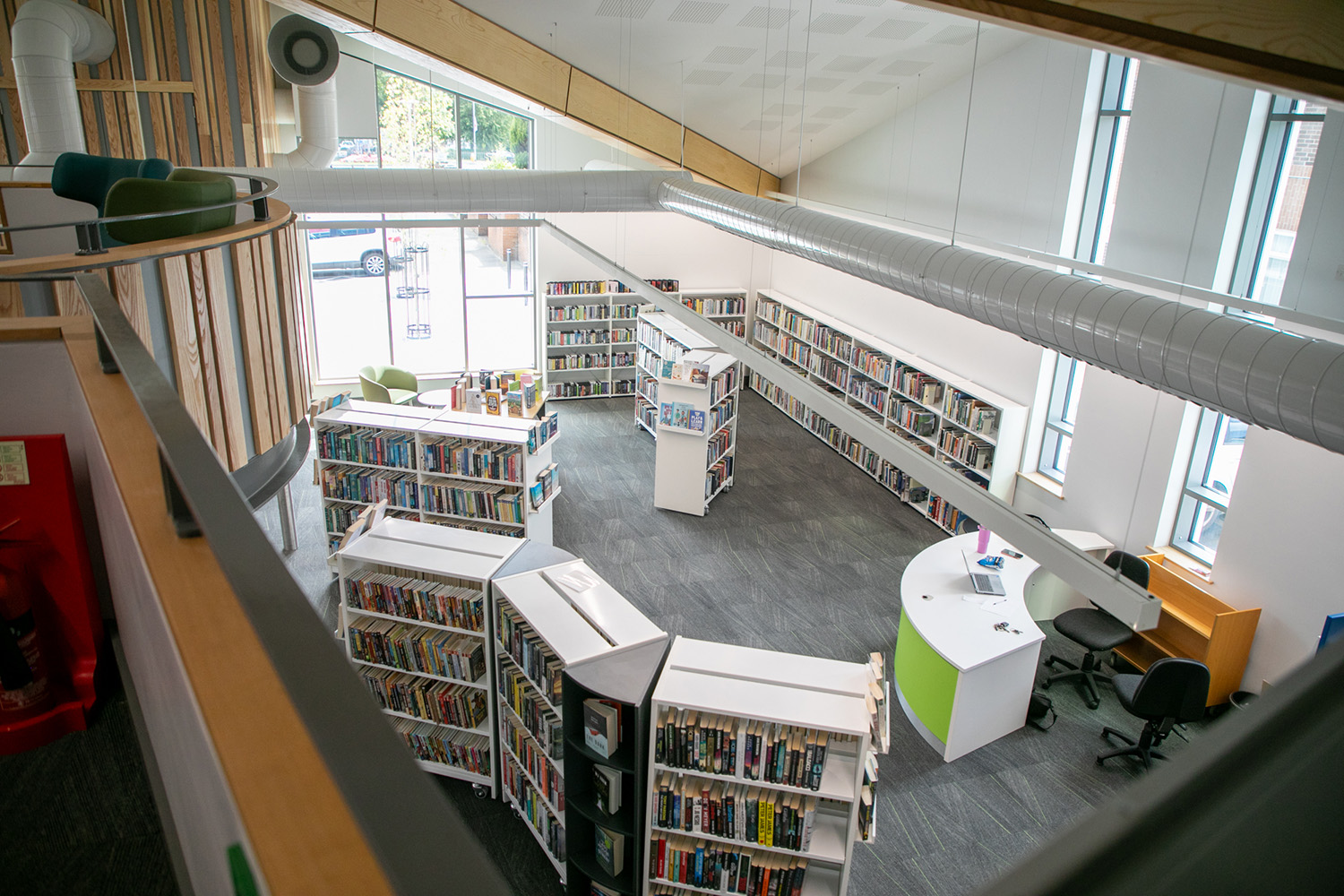 Indvendigt har biblioteket gennemgået en bemærkelsesværdig forvandling. Ny omfattende indretning, herunder nye gulvbelægninger, skranke og moderne biblioteksmøbler, har skabt et rum, der er både indbydende og funktionelt. Desuden er den øverste mezzanin nu åben for biblioteksbrugere, hvilket giver et fredfyldt område til at læse eller studere.