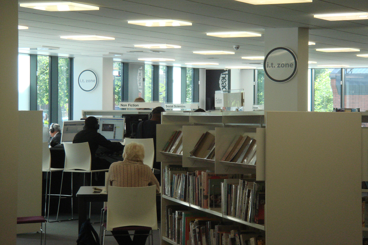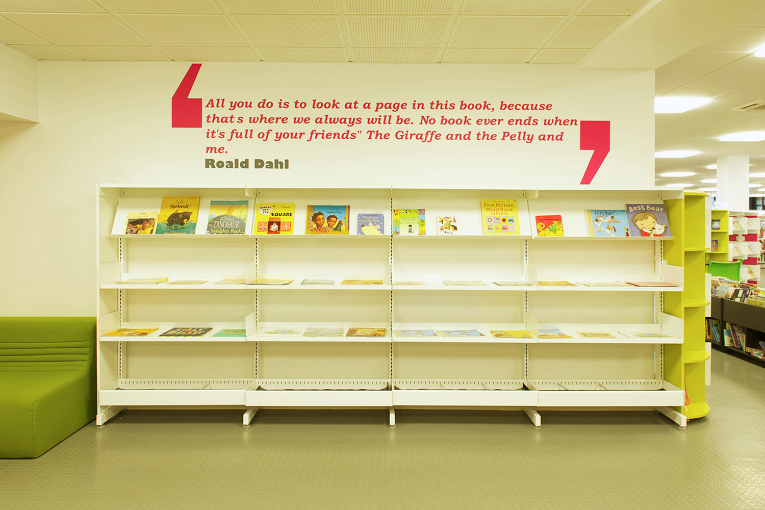 Alle fire biblioteker er indrettet med 60/30 stålreoler og specialfremstillede enkeltstående møbler, der er designet til at fremhæve de eksisterende selvbetjeningsskranke. Biblioteket har samme grundlæggende koncept som Beswick, Brooklands og Hovedbibllioteket i Manchester, men de unikke farvetemaer og karakteristiske detaljer giver hvert bibliotek sin helt egen identitet.