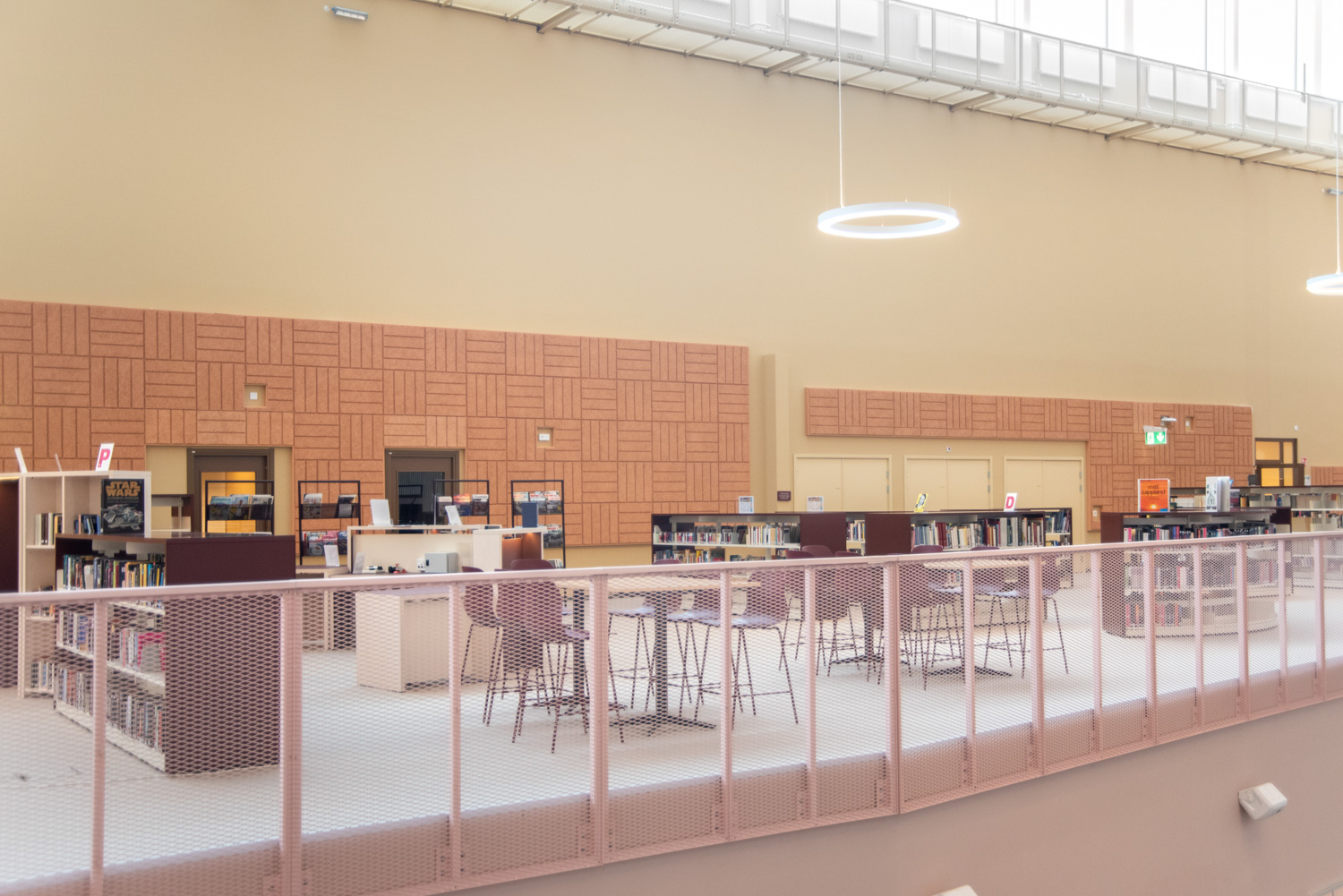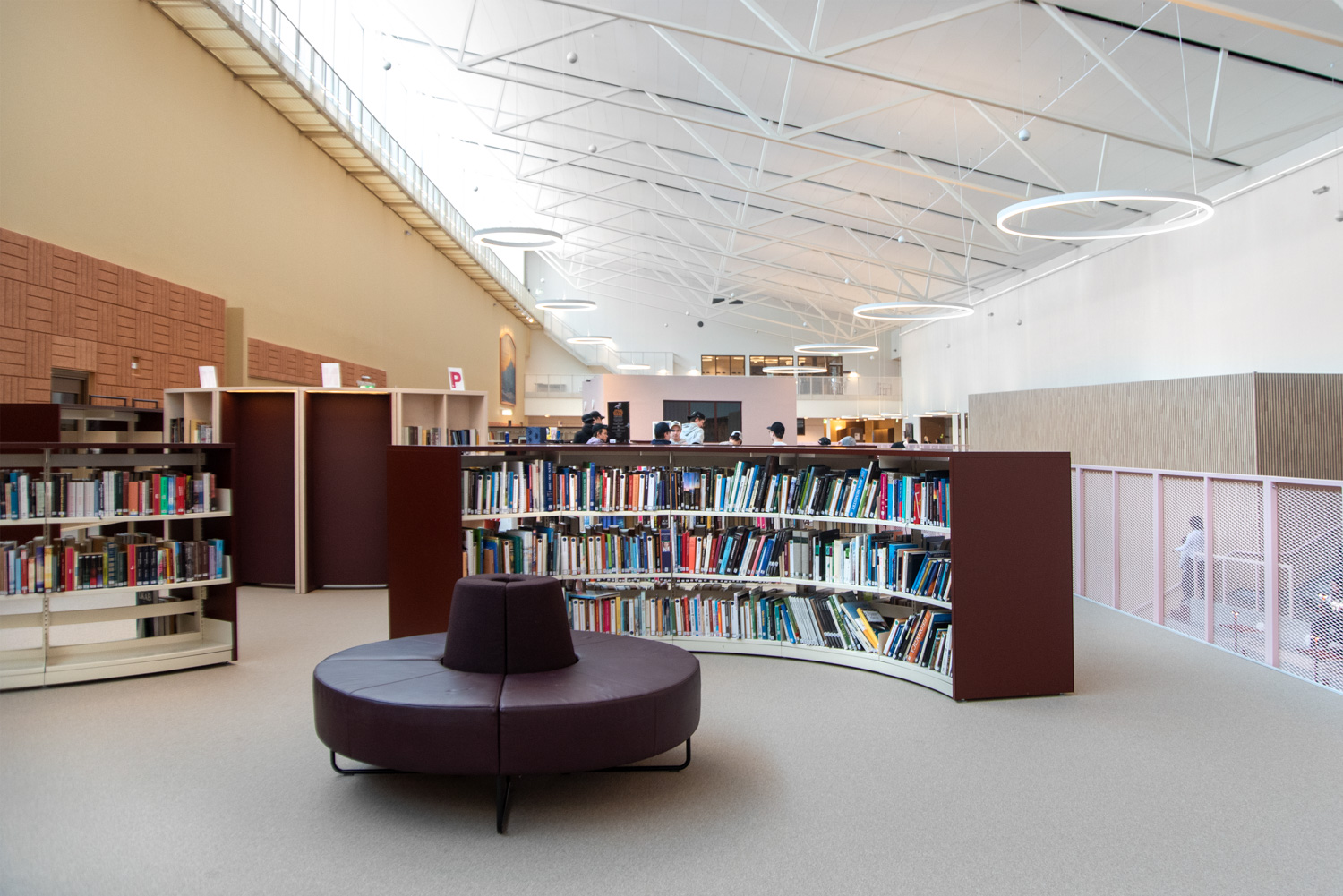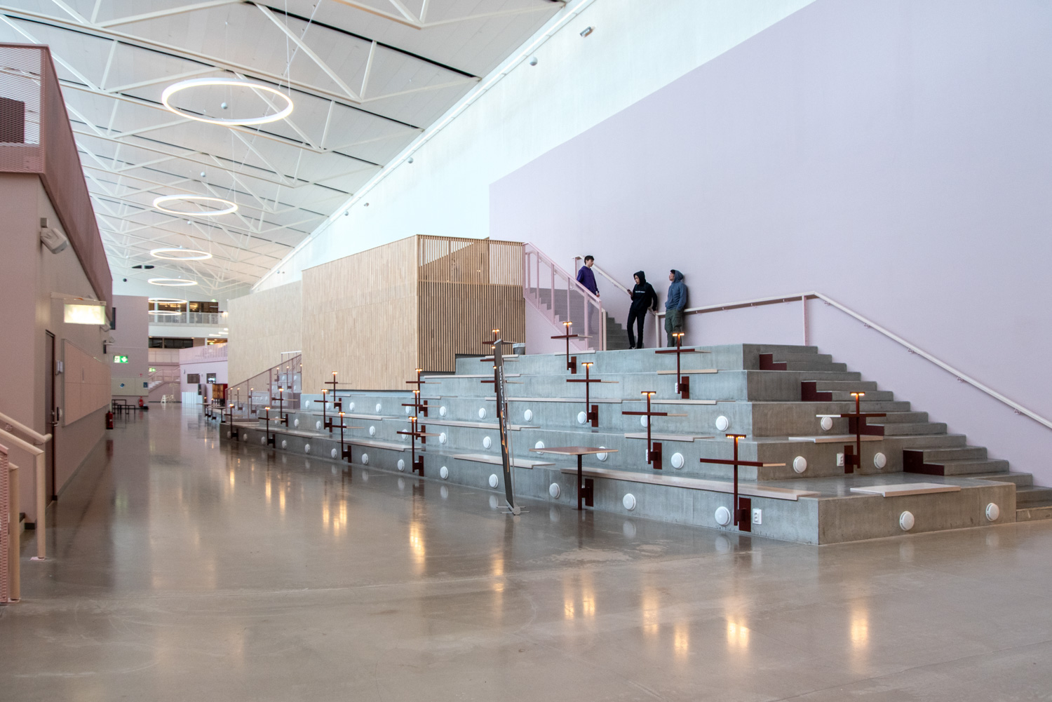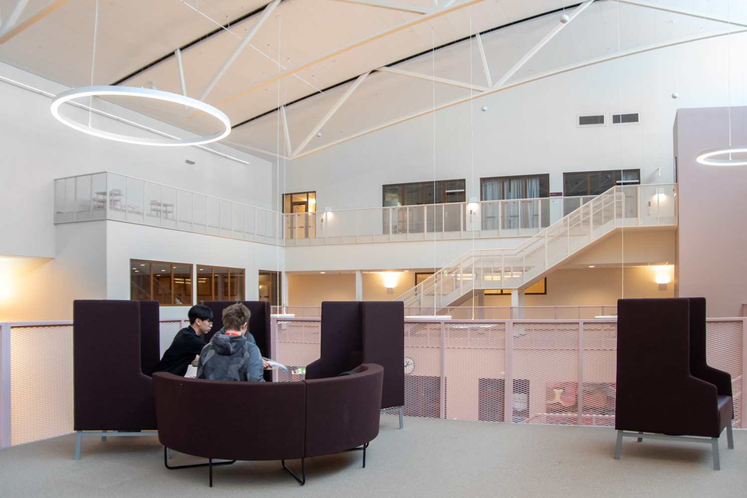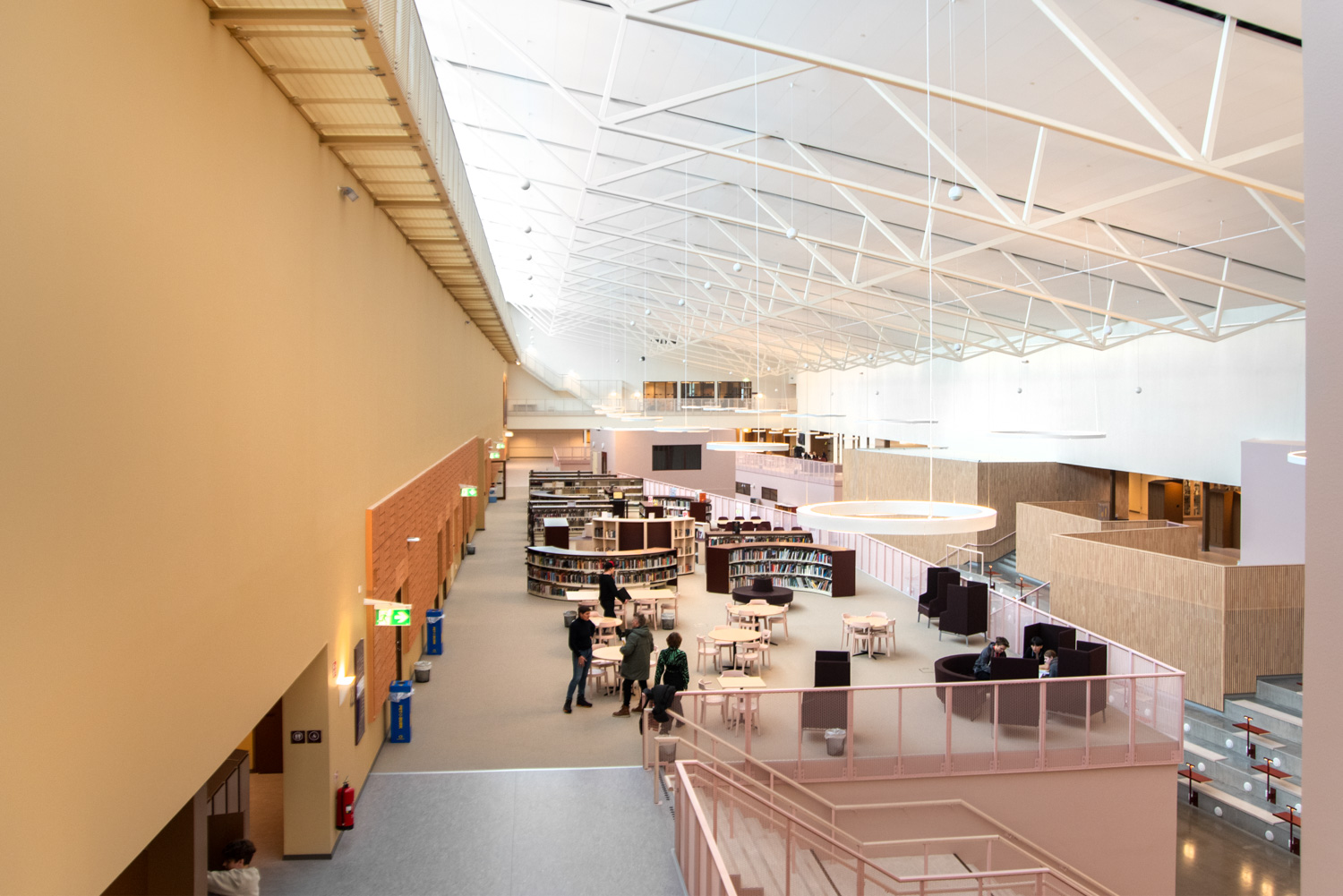 Bygningens kerne er et centralt torv, der danner bindeled mellem vidensbyen og resten af bymidten. Herfra bliver den besøgende ledt ind i et rummeligt atrium, hvor byens og skolens aktiviteter mødes i et fælles og offentligt rum. Her ligger også biblioteket, hvor en generøs mængde dagslys kommer fra store glaspartier ved taget, som inviterer besøgende til at kigge op mod himlen og følge årstidernes forskellige kendetegn.