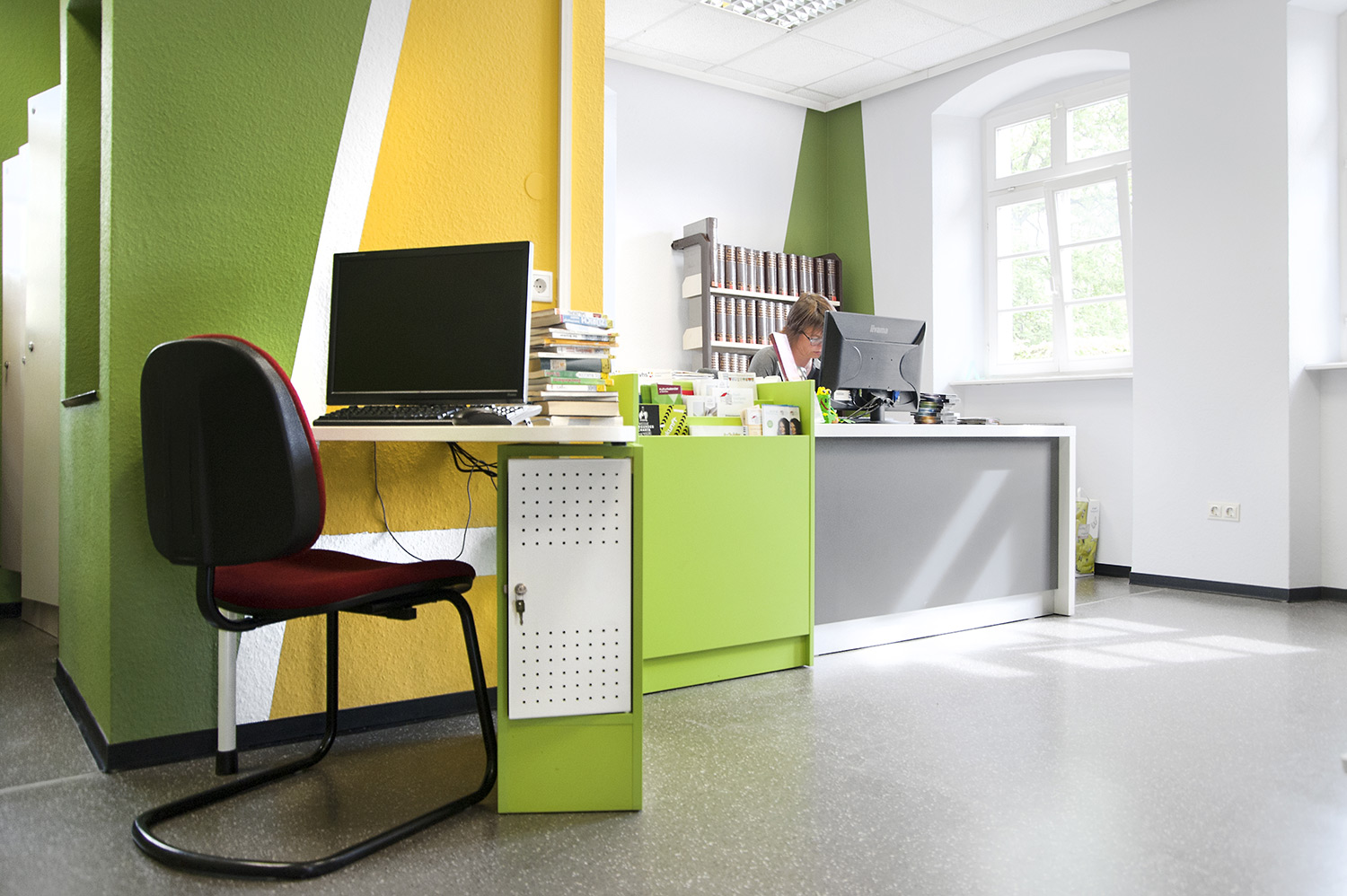 Bretten Bibliotek har til huse i en århundrede gammel bygning, der nu er blevet opfrisket med nyt biblioteksinventar. Inform skranke, Labyrinth udstillingstårn og "vilde" udstillingsholdere med dyr tilfører en ny, frisk indretning.